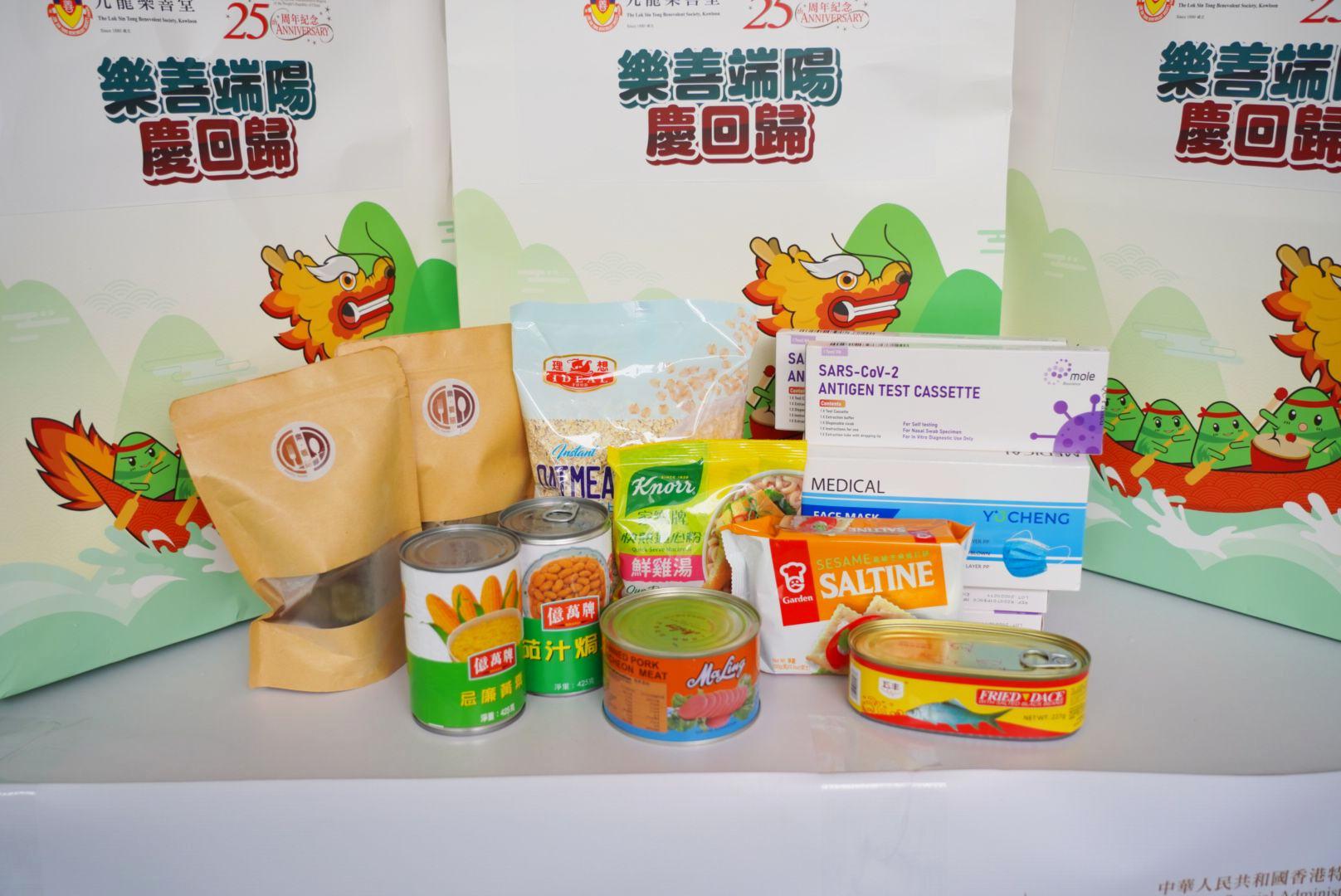 「慶回歸端午禮物包」內容非常豐富,有不同食品、愛心糉及防疫物資等。