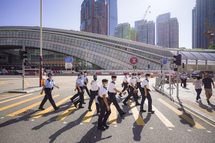 據現場所見,西九高鐵站一帶保安明顯增強,車站外圍有巨型水馬陣圍封,所有出入口已經封閉。至於鄰近的港鐵柯士甸站,多個出入口關閉,並有警車戒備,附近有大批警員及保安戒備。