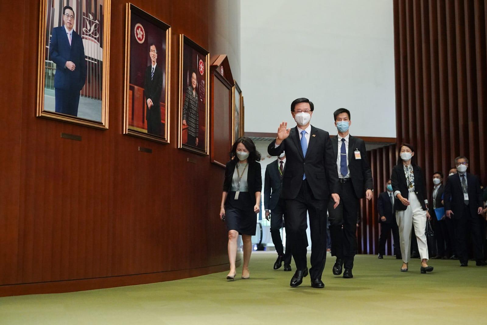 此外,李家超表示已要求局長下月呈交指定項目的指標,以了解項目進度,強調政府會務實有為,解市民所困。 他提到,國家主席習近平早前的講話,高瞻遠矚,給予各界和國際社會對「一國兩制」行穩致遠的信心;而習近平提到的「四點希望」,亦對特區政府施政意義重大,他認為,自己競選時提出的政策綱要,大抵符合「四點希望」,令他很鼓舞,政府亦已經就習近平的講話,開展跟進工作會議,並會在施政實踐。