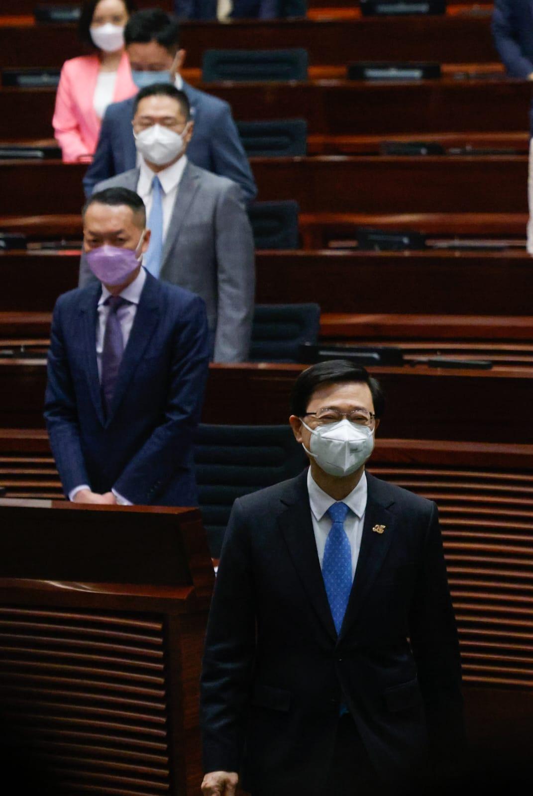特首李家超今天首次以行政長官身份,出席立法會特首答問會。(李睿哲攝)