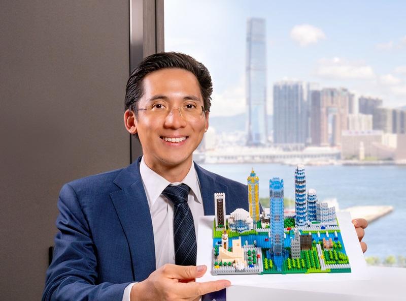 郭基泓表示,集團呈獻香港天際線模型,讓大家感受透過雙手建設帶來的滿足感,一起建設家園和未來。(新地圖片)