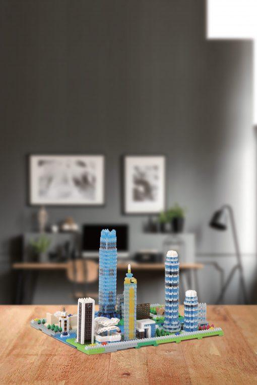 「香港天際線模型」由2,190粒配件所組成,以迷你積木砌出維港兩岸的多幢地標式建築物,包括3幢由新地發展、全港最高的建築物:環球貿易廣場(ICC)、國際金融中心二期(Two IFC)及中環廣場,彰顯美麗獨特的天際線,當中ICC與Two IFC更組成矚目的「維港門廊」景觀。模型亦有其他著名地標,包括新地總部新鴻基中心、政府總部、會展、尖沙咀鐘樓、香港文化中心及太空館等。