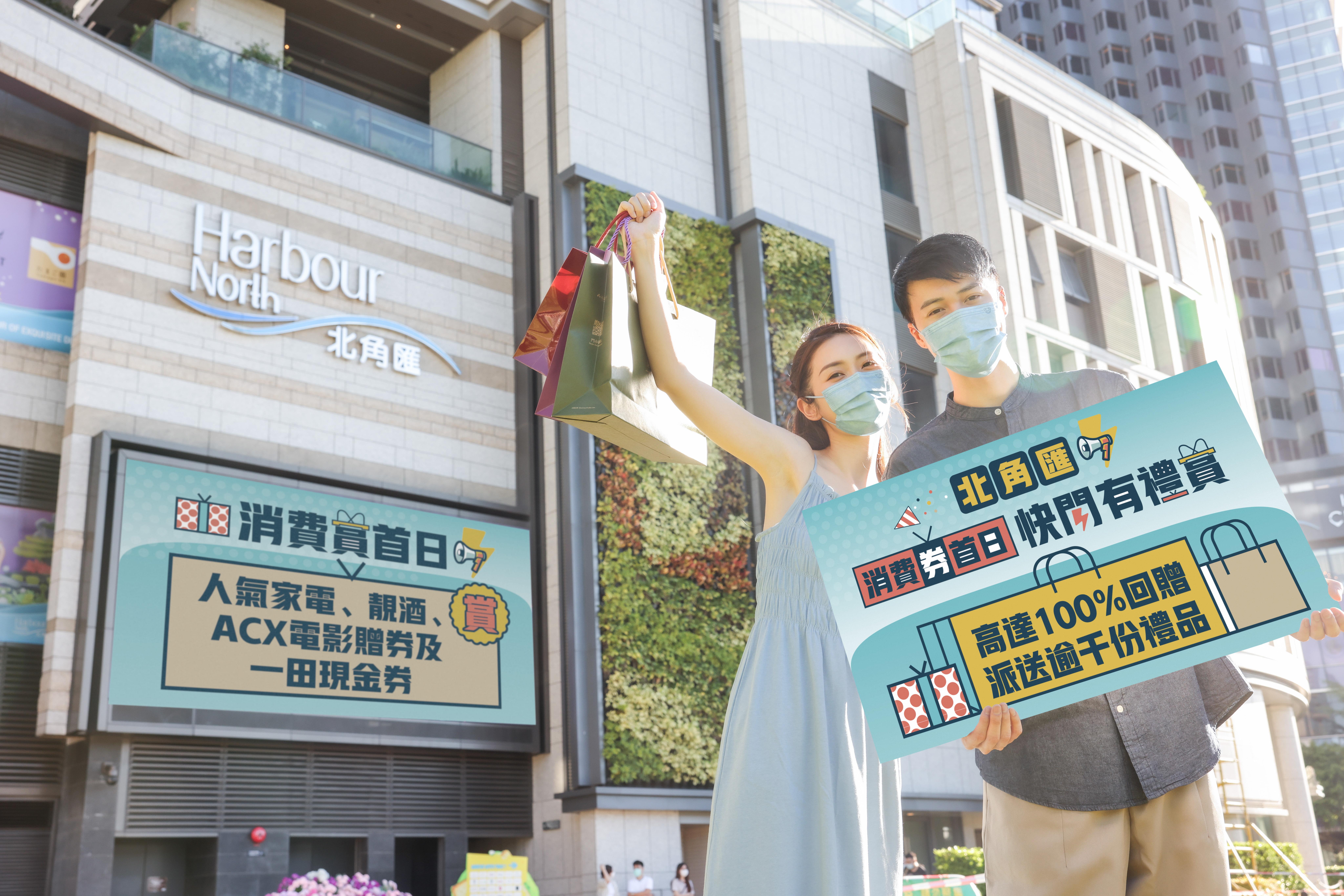北角匯於消費券發放首天限時推出「消費券首日快閃有禮賞」,送出逾千份豐富禮品,回贈率高達100%。
