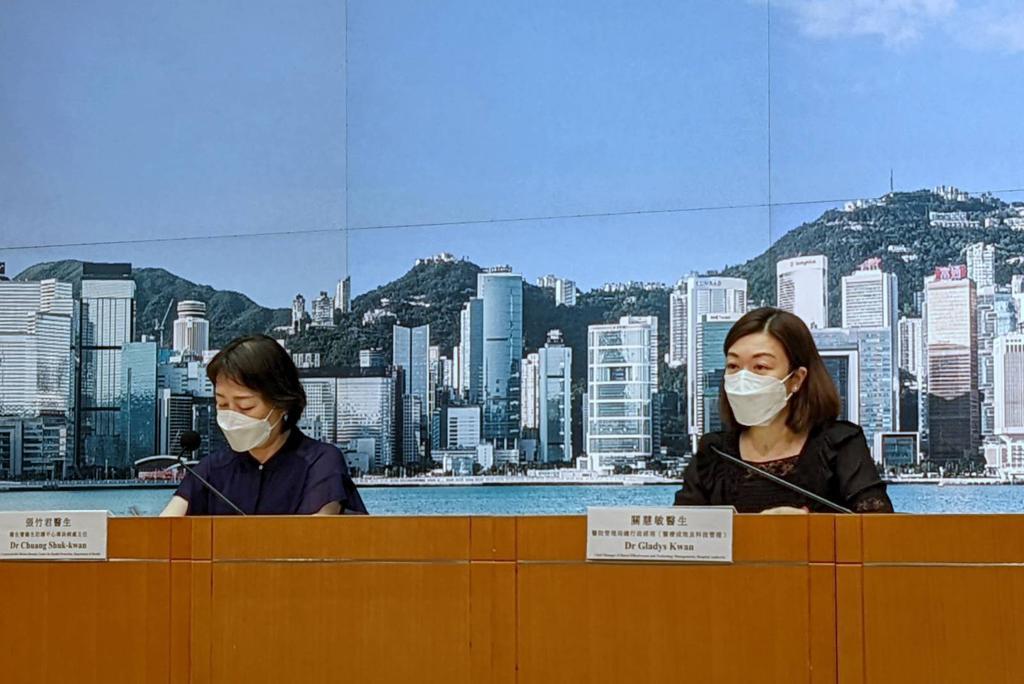 衞生防護中心傳染病處主任張竹君(左)和醫管局總行政經理關慧敏(右)出席新型肺炎疫情記者會。(羅庸軒攝)