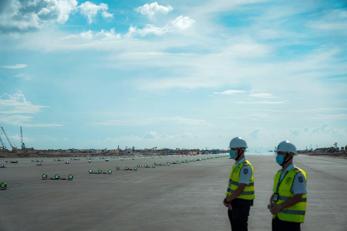 機管局三跑道項目執行總監梁景然表示,第三條跑道為符合國際民航規例的F類跑道,空中巴士A380等大型客機可以降落。他表示,運行後證明採用免挖式「深層水泥拌合」的方法填海,適合第三條跑道的特點。