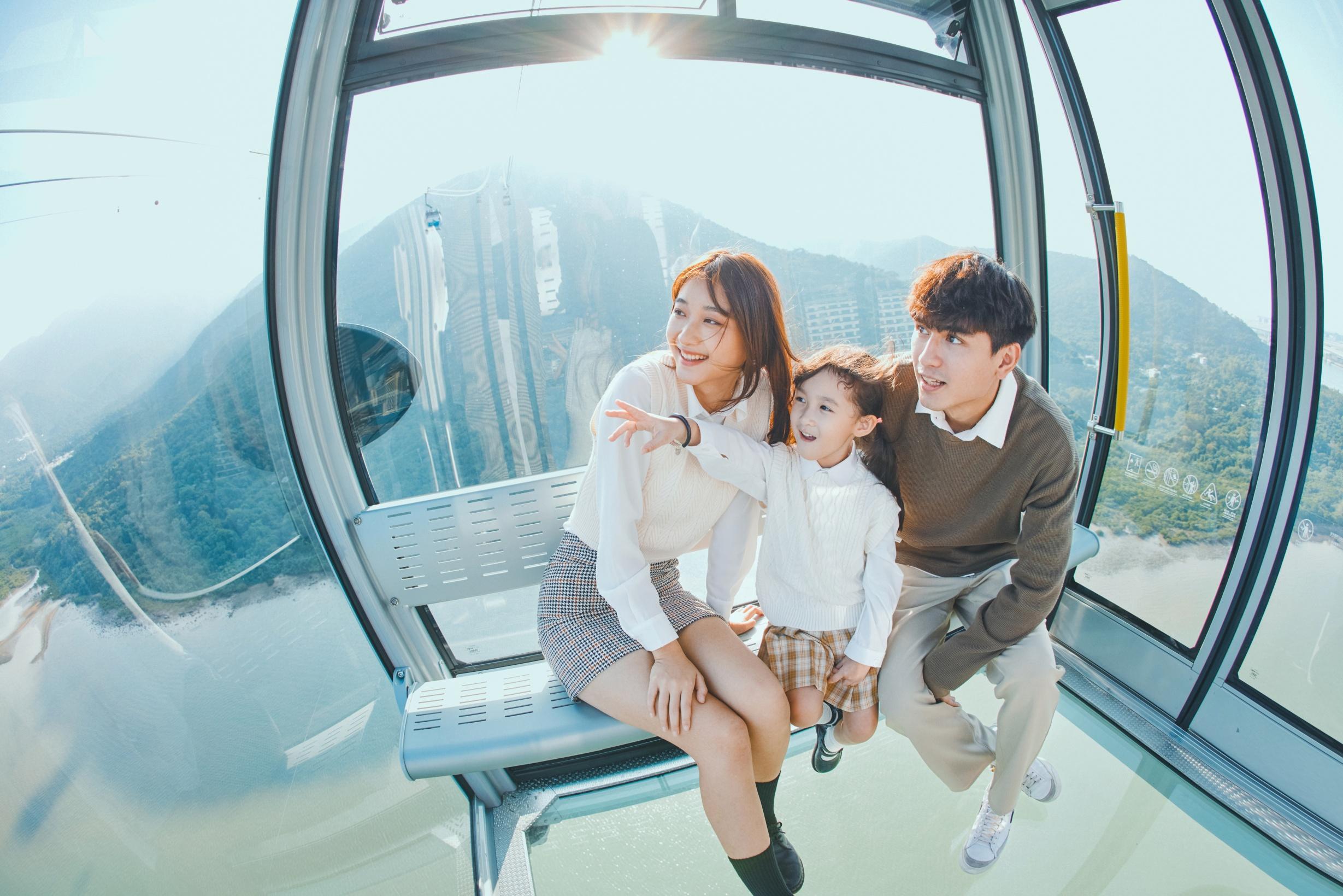 昂坪360全新「再進化」透明車廂「全景纜車Crystal+」登場!車廂底部及四面更全面採用全透明玻璃,提升纜車逾八成「無遮無掩」,令乘客更貼近懸浮空中由東涌飛越群山大海登上昂坪,360度飽纜大嶼山景色。「全景纜車Crystal+」車廂12月10日正式投入服務,門票即日起預售,賓客可享低至六五折早鳥優惠。