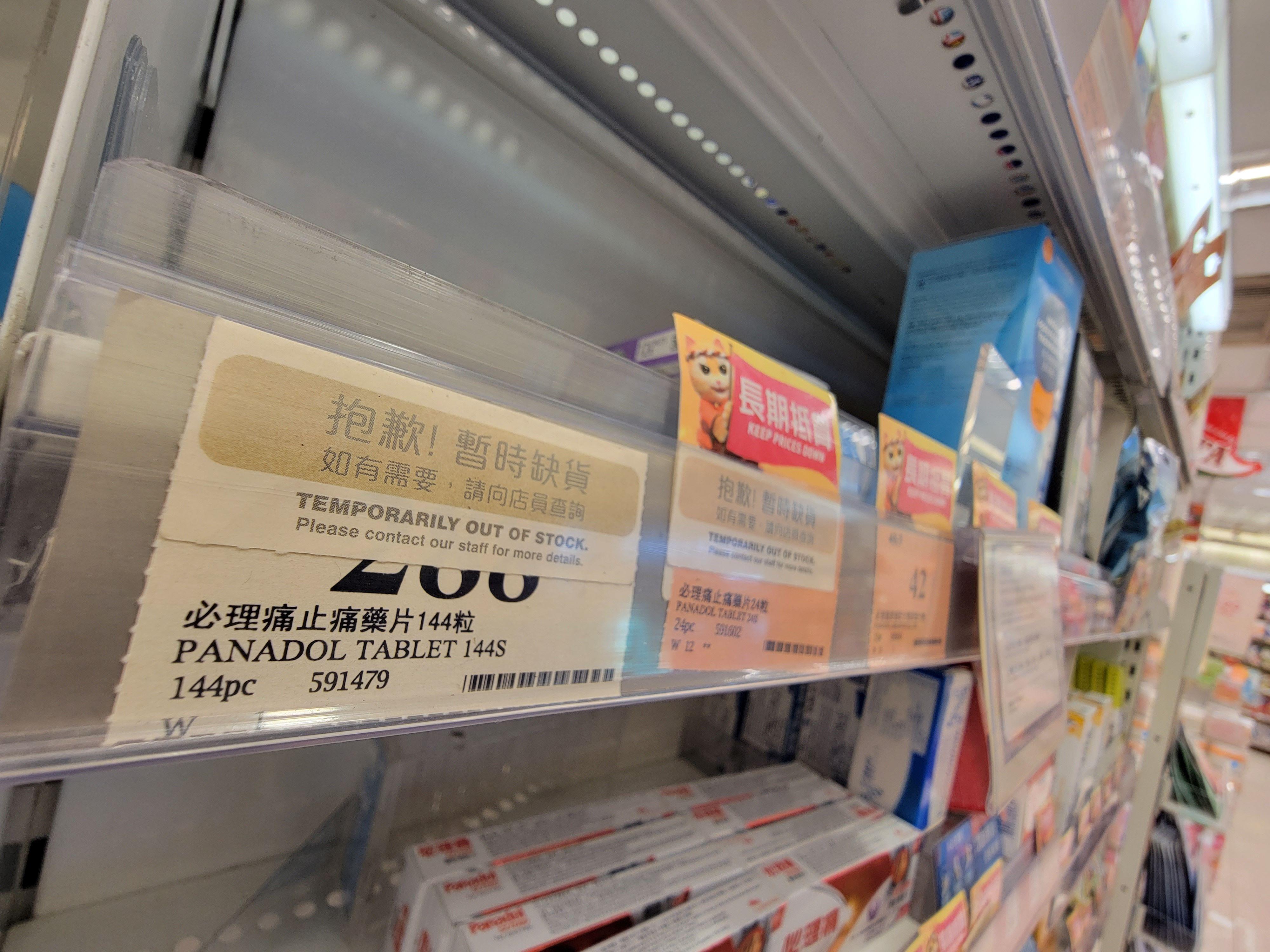 近日「必理痛」等品牌的止痛退燒藥在港供應短缺。港九藥房總商會副理事長張德榮承認,個別品牌的止痛退燒藥已斷貨,但含撲熱息痛產品很多,呼籲巿民不用集中購買個別品牌。