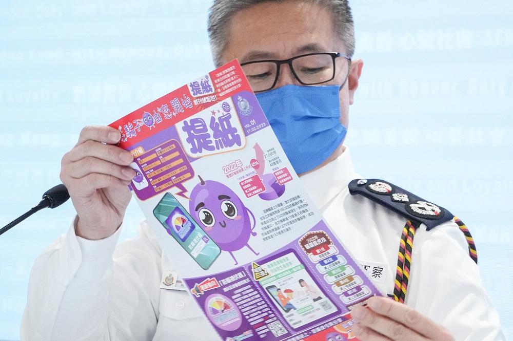 警方今日公布去年共有得約7萬宗罪案,按年升8.7%,原因是詐騙案急增,按年增約8千宗、至有近2.8萬宗、升幅45%,涉款48億元。處長蕭澤頤指,雖然本港詐騙案宗數由去年10月的高位回穩,而電話騙案亦在過去兩個月錄得顯著跌幅,但騙案仍然禁之不絕。他表示,警方在過去兩年透過不少渠道作出宣傳,惟不少受害人仍沒有留意,「當你唔認真去睇,有騙徒打畀你都唔知」,他表示未來會繼續加强宣傳,做到「你唔想聽唔想睇,我都要你聽到睇到」,亦呼籲家人朋友幫忙提醒。