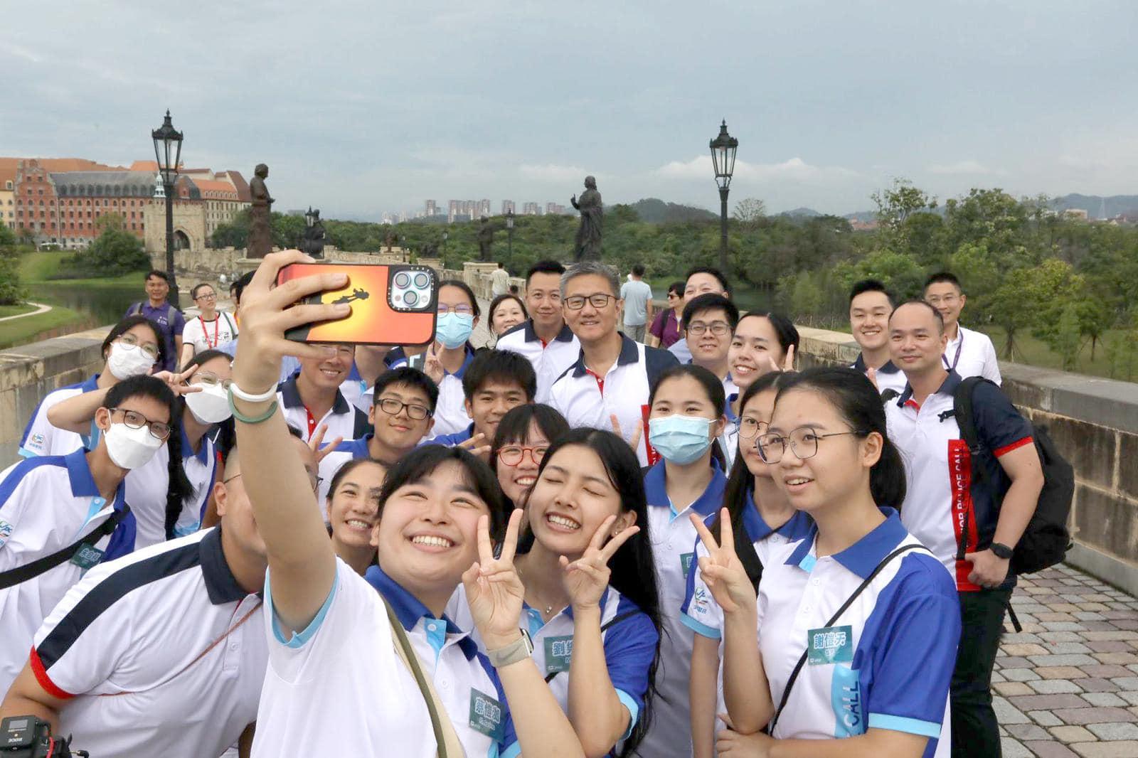 警務處處長蕭澤頤帶領32個少年警訊成員去東莞同深圳進行兩日一夜嘅交流活動,喺尋日東莞行程,一行人參觀咗東莞松山湖華為總部,喺社交網站帖文所見,成班團友把握機會同「蕭Sir」自拍留念,蕭澤頤喺聚餐時間同一班後生仔坐埋一枱,見佢哋一邊食一邊傾得好開心。