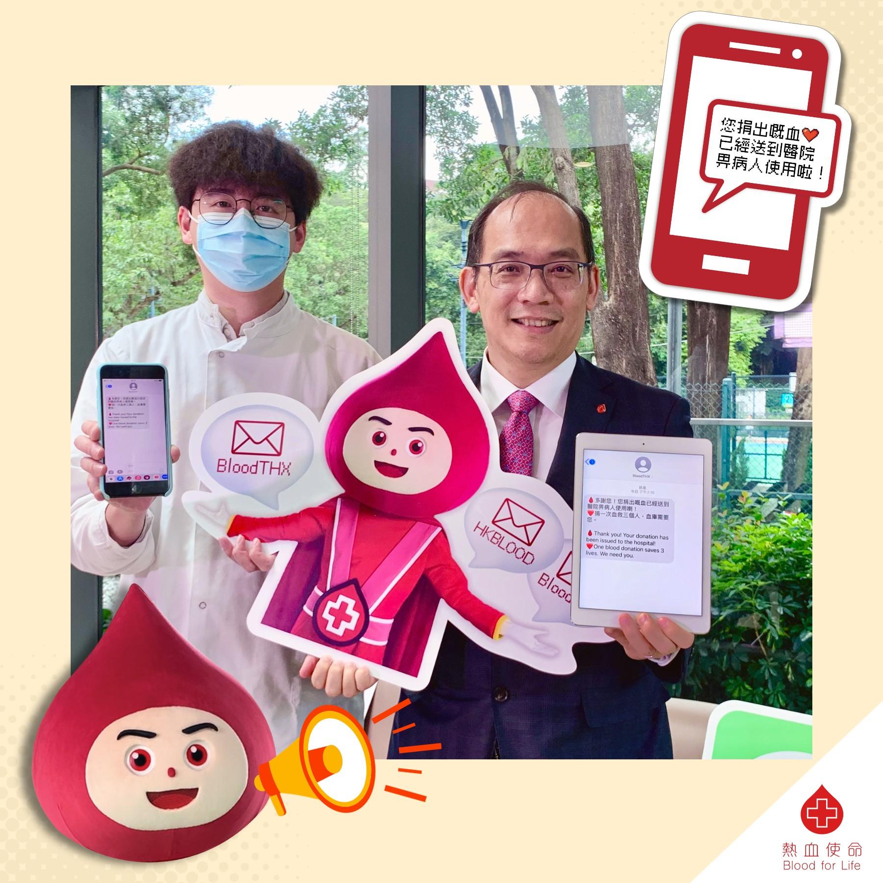 紅十字會輸血服務中心推出全新感謝捐血者短訊,當捐血者的紅血球製品經由中心血液貯存及分發科,發送到全港任何一所醫院後,中心便會發放感謝短訊,同時告知捐血者,血液已送到醫院供病人使用。