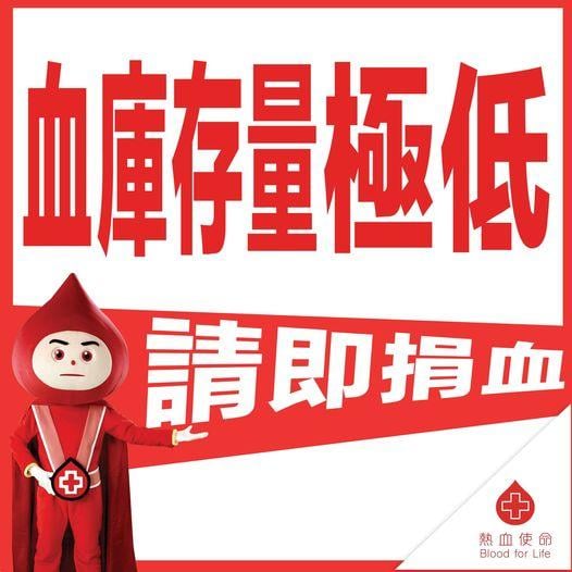 香港紅十字會輸血服務中心表示,現時血庫存量極低,呼籲公眾捐血。「病人治療唔等得!捐一次血,救三個人,請即行動!」紅十字會再次於社交平台發帖文表示,目前中心血存量跌至極低水平,需要市民盡快前來捐血補充血庫,以確保病人得到適切治療。