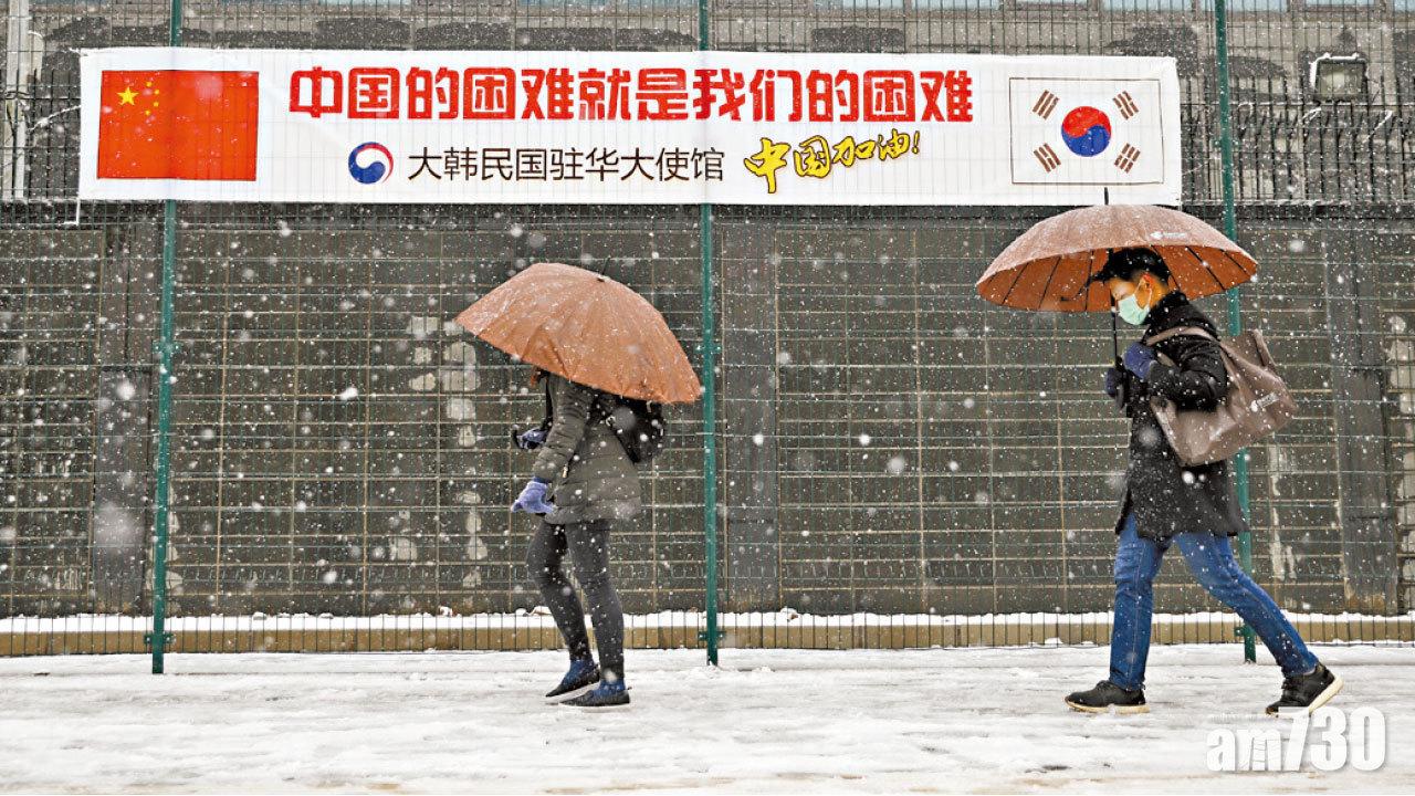 南韓駐華大使館曾為中國打氣。( 中新社)