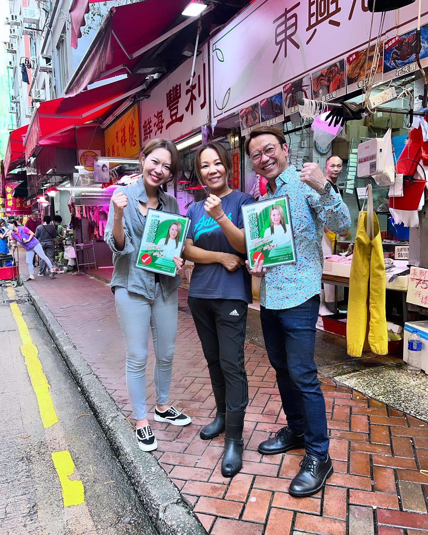 區議會選舉下個月10號舉行,灣仔區成為焦點選區,因為有藝人宋芝齡出選。外界經常問到幾時同主持拍檔、「大王」安德尊「行拍拖更」,今日終於見到兩個人合體去灣仔街市一帶拉票,吸引唔少街坊影相呀。