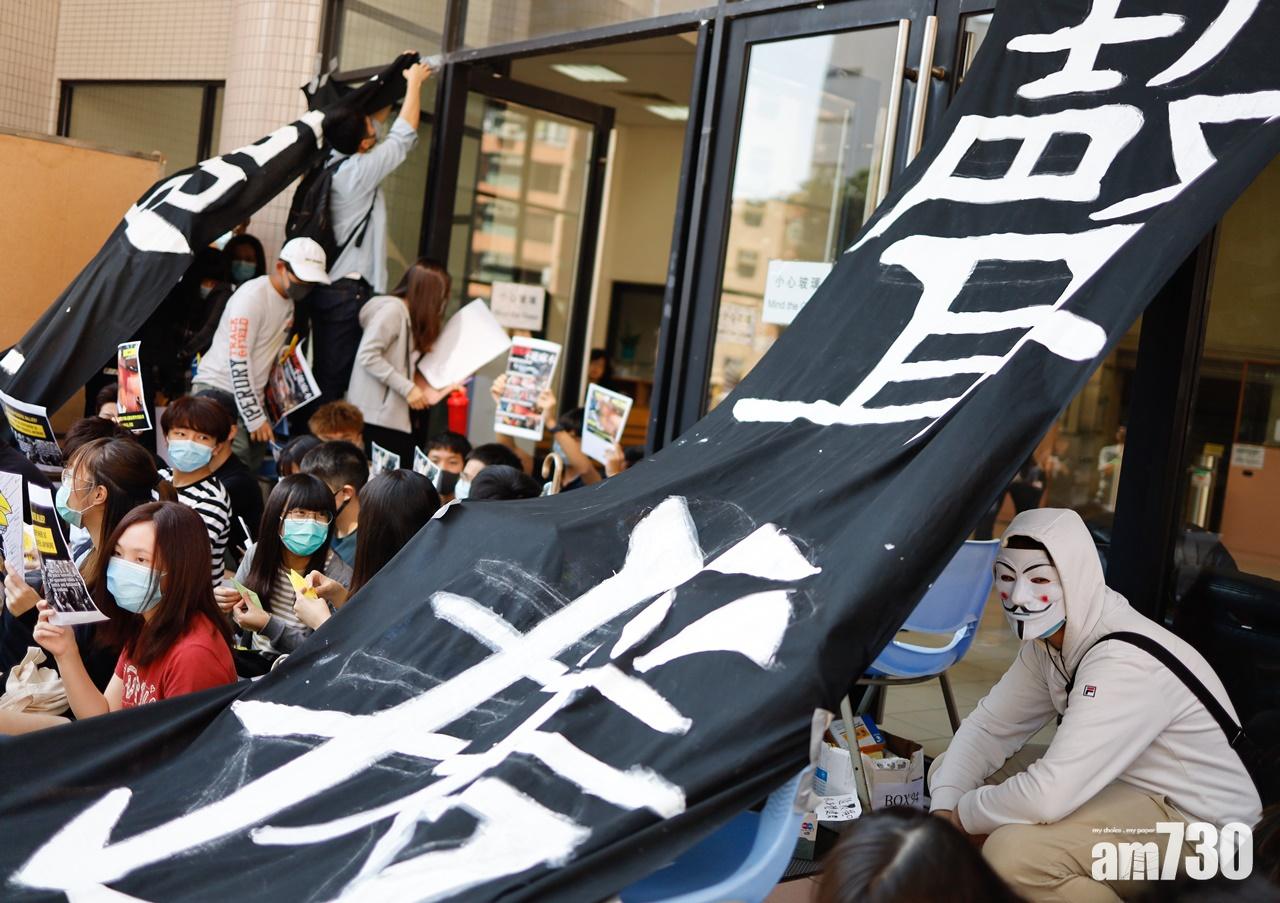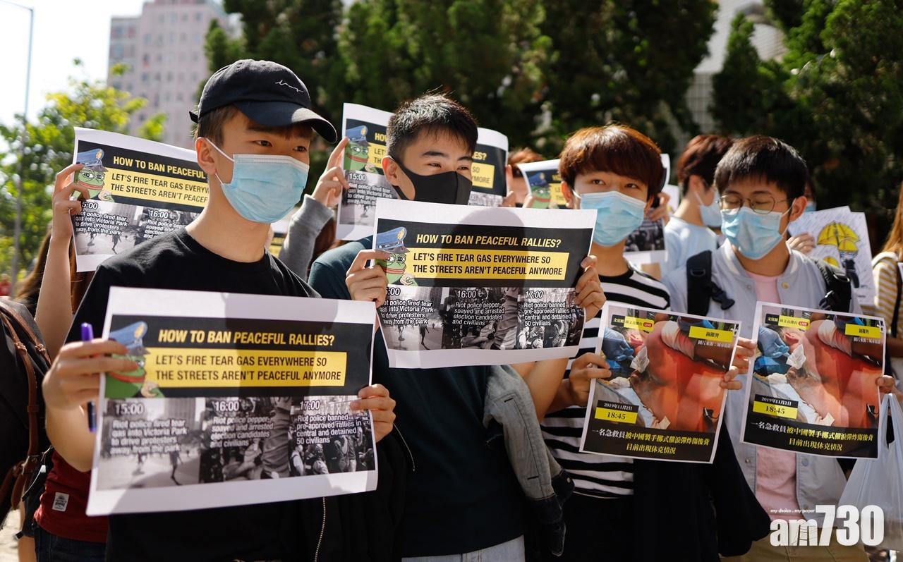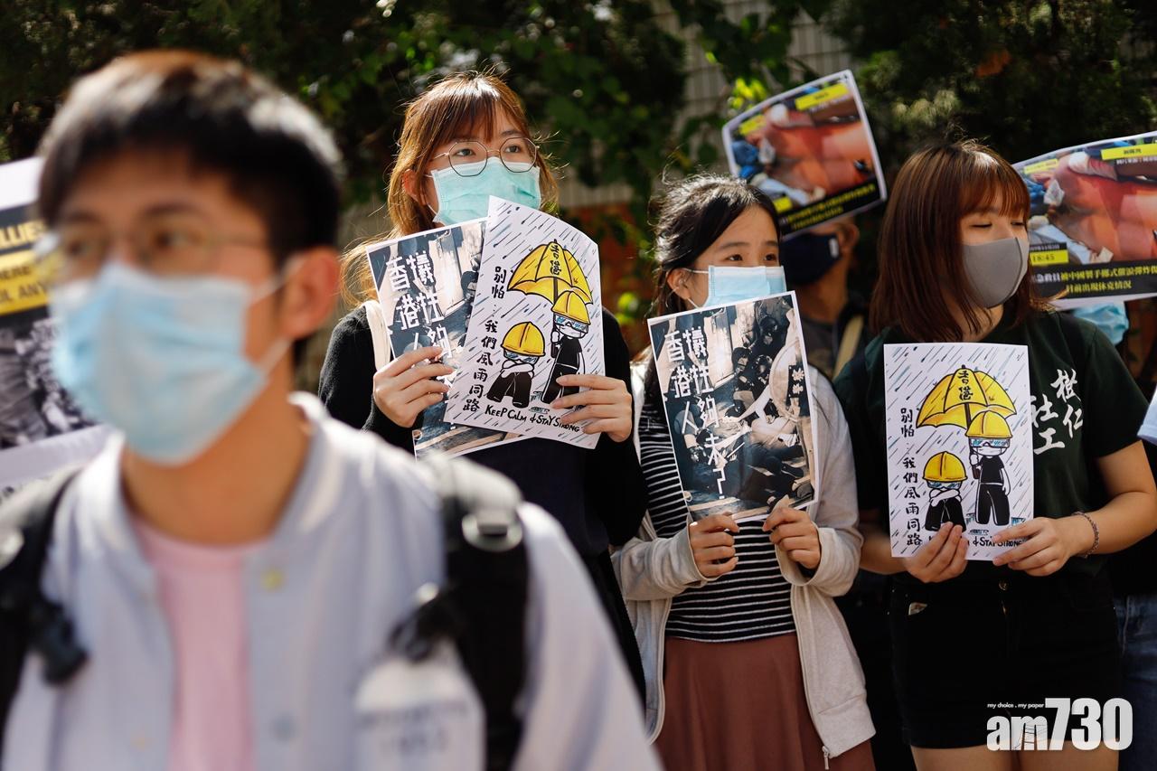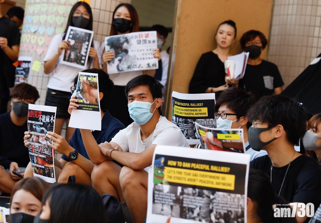 【修例風波】樹仁學生校內集會聲援被催淚彈炸傷男生