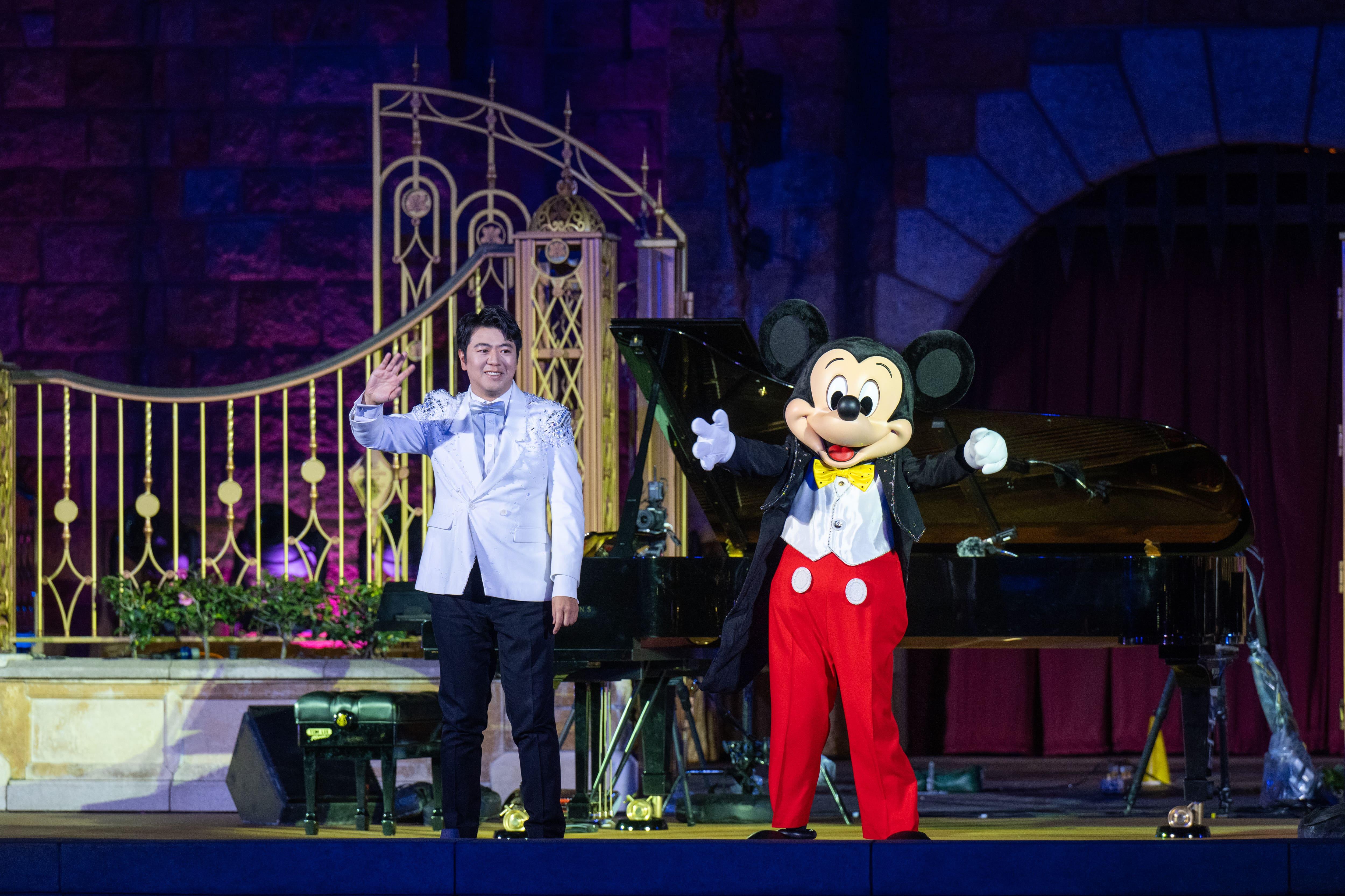 世界知名鋼琴家郎朗在1月27日晚首次踏上香港迪士尼樂園奇妙夢想城堡舞台,與客席指揮趙增熹、弦樂四重奏樂團以及一眾迪士尼朋友,為大家帶來「迪士尼經典音樂 Live—郎朗領銜演奏」。(由受訪者提供)