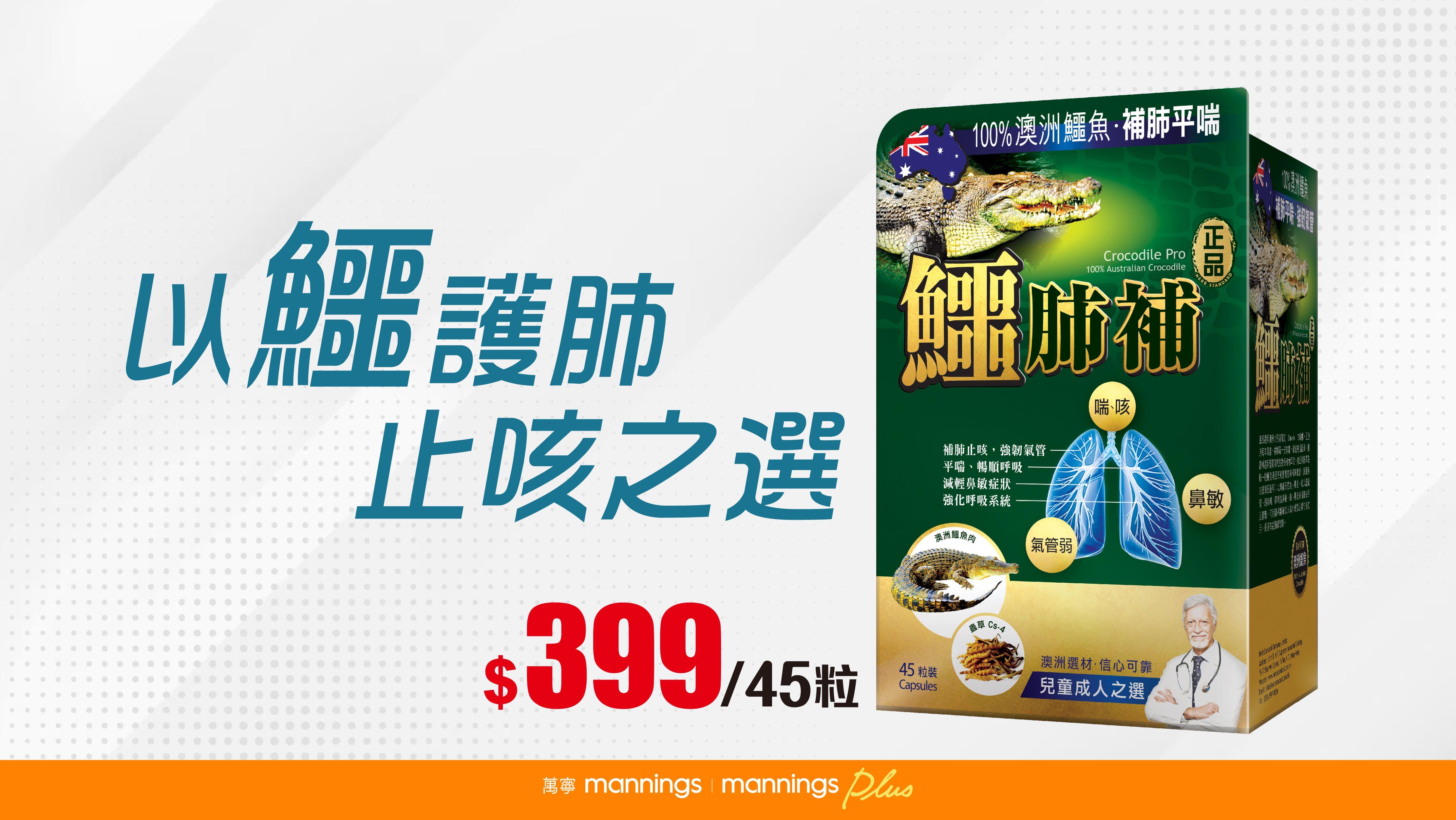 萬寧有售|【正品鱷肺補(45粒)】$399/盒