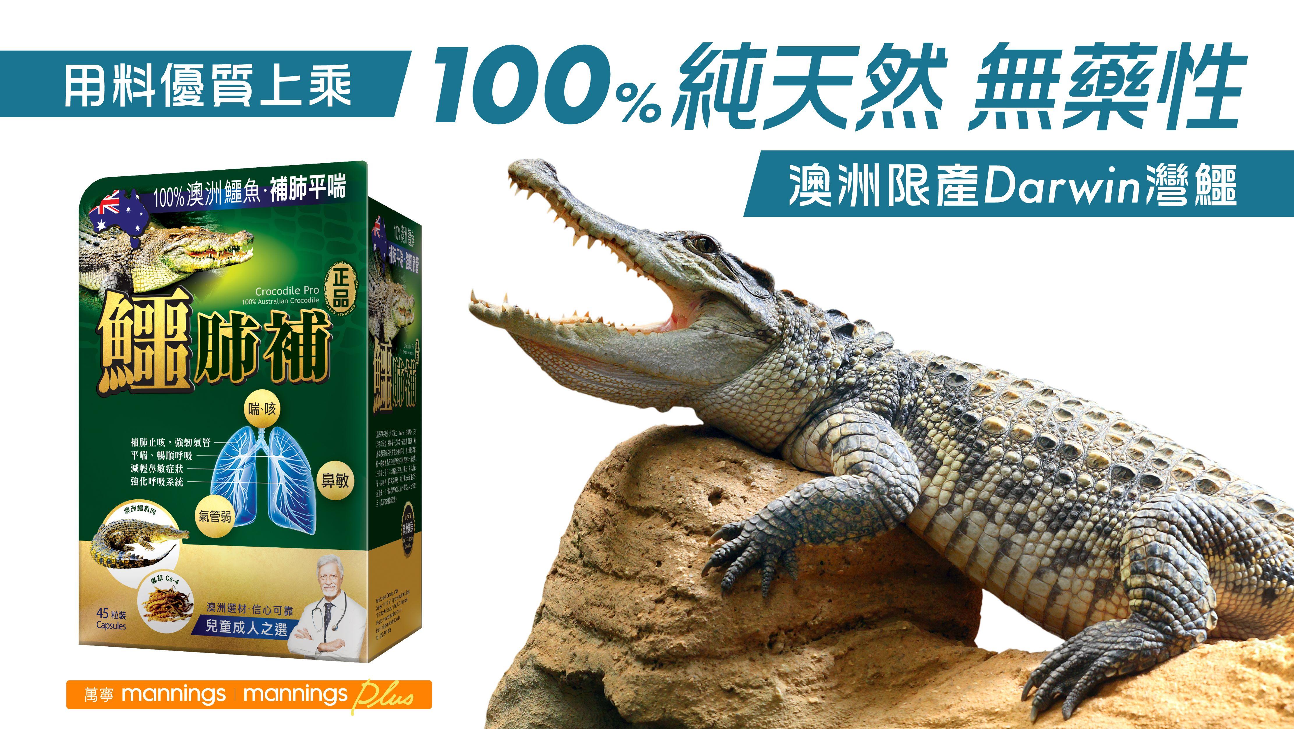 「正品鱷肺補」所選用的100%澳洲Darwin灣鱷,在無污染、水質優良的海域生長,並受當地政府嚴格監管,每年限產,以確保鱷魚品質。此外,產品更添加了優質蟲草CS-4及槲皮素,所有成分採用科技萃取,較一般鱷魚湯品更能保證成分有效。
