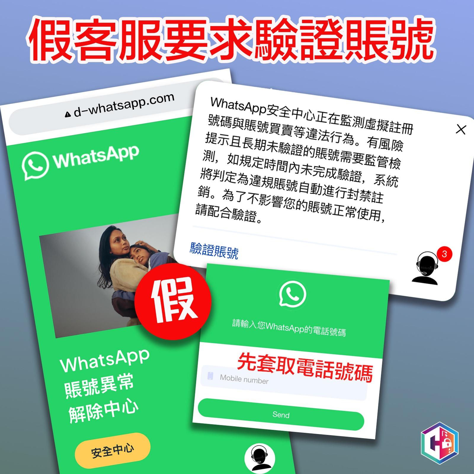 騙徒手法層出不窮,但不時亦會故技重施。警方守網者表示,騙徒再次廣發釣魚短訊,聲稱WhatsApp戶口未驗證和附上假網站連結,威嚇如不進行驗證,帳戶將會被注銷。然而,按下連結進入WhatsApp假網站後,假客服會以協助你驗證帳戶為藉口,實則「step by step」教你如何協助他Hack進帳戶。