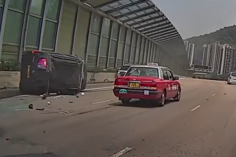 大埔吐露港公路再有車輛失事翻側,今日(12日)下午1時27分,一輛黑色客貨車沿吐露港公路往九龍方向,途經至新峰花園對開入彎時,突然於右綫撞石壆翻側,及後打了多下白鴿轉,最終停在左綫路肩,碎片散滿三條行車綫。一輛白色私家車被波及撞到,車頭逆向停下,車內一名3歲小童被玻璃碎擊中受傷,客貨車司機自行爬出車廂,手部流血。有熱心司機特意停車為傷者提供協助。