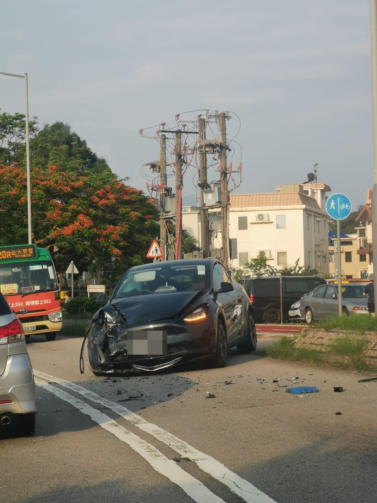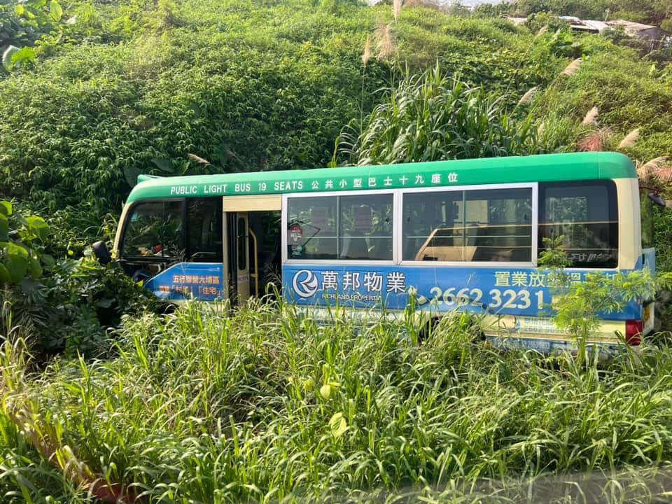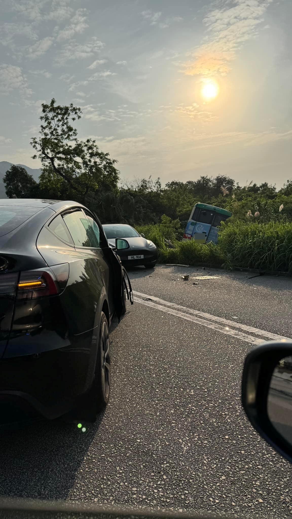 今日(9日)清晨6時許,汀角路往大美督方向近布心排村有兩車相撞,包括一輛綠色專線小巴和一輛Tesla電動車,綠色專線小巴繼而剷入路邊草叢。現場消息指,事發時綠色專線小巴沿汀角路往大美督方向行駛,其間Tesla由小路駛出,結果兩車相撞。
