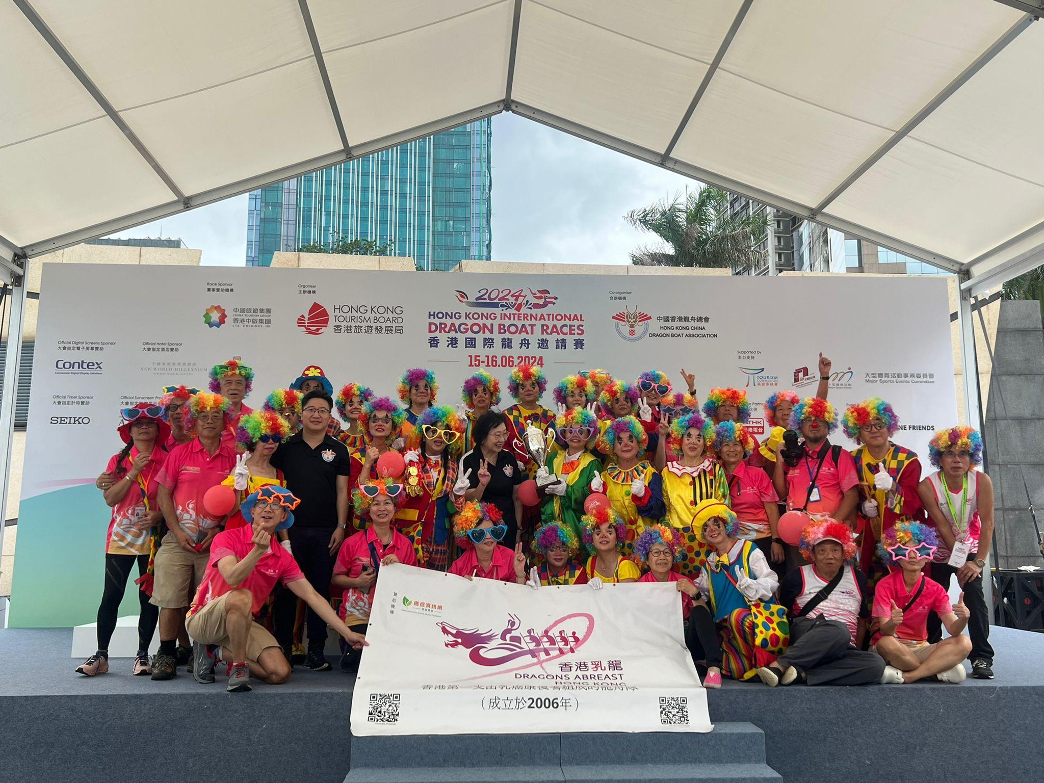 冠軍隊伍由香港乳龍以「小丑」為主題,隊員頭帶七彩爆炸頭假髮,配上眼鏡及小丑標誌「紅鼻子。香港乳龍由一群乳癌康復者、家人及支持者共同組成;負責服裝設計的趙梅華指每年都會以奪目,色彩繽紛為主題,希望令大眾感到開心,亦希望隊員能精彩過每一天。