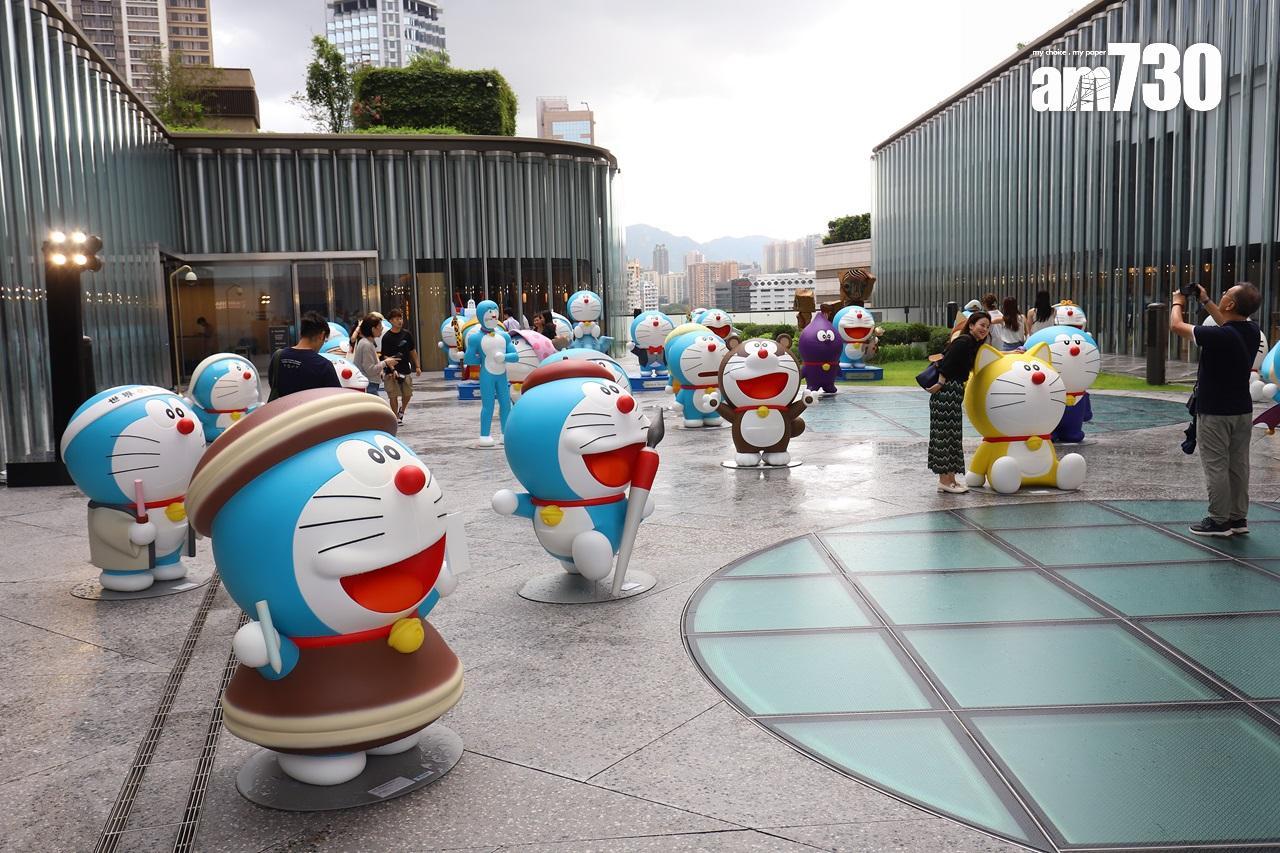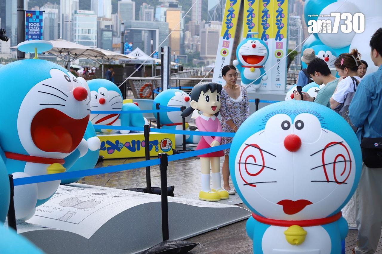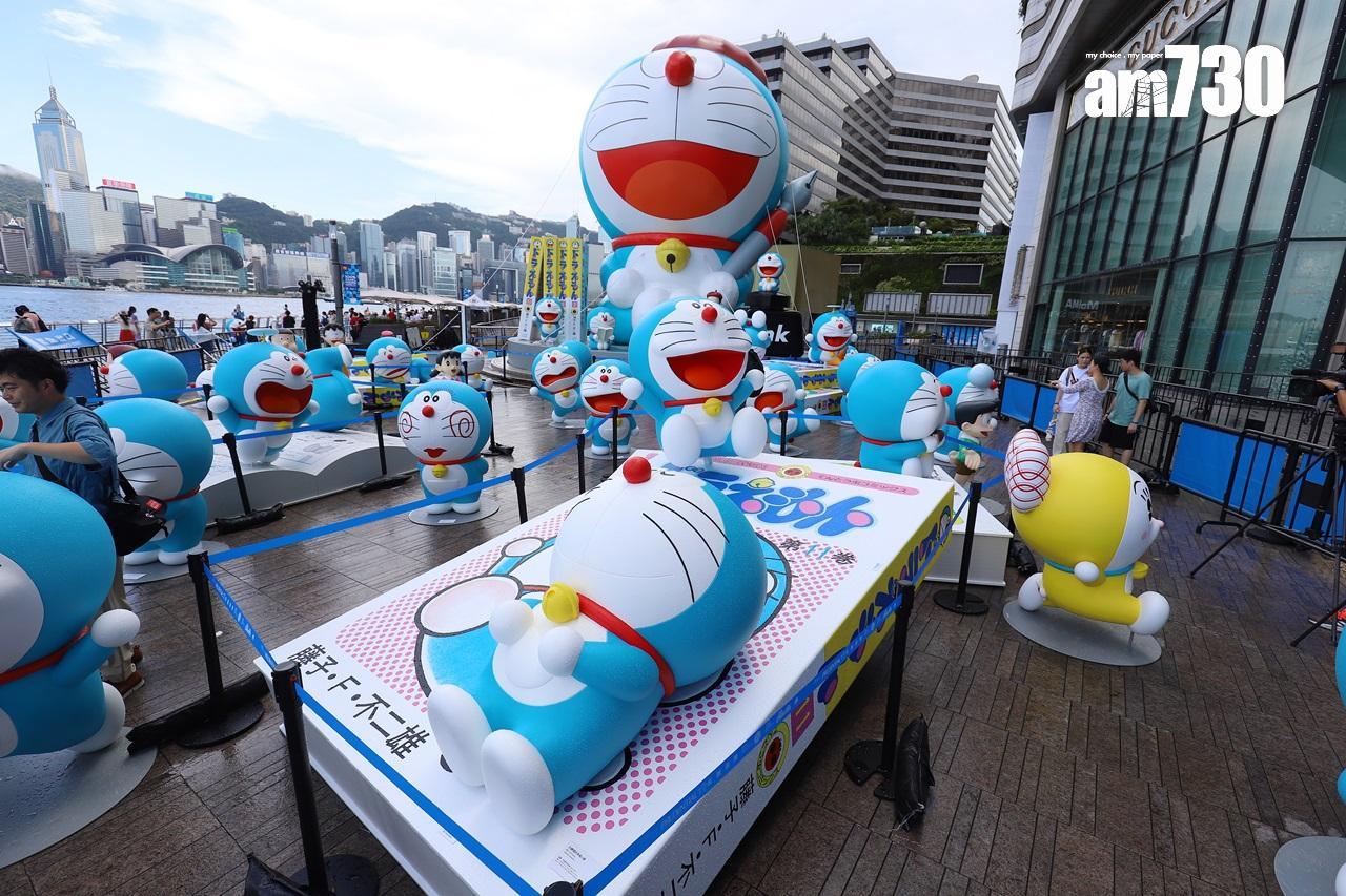 【15:45更新】早前因天氣不穩,暫時收回的多啦A夢大型充氣公仔,今早(23日)重新充氣,在尖沙咀海濱展出。據本報記者實地觀察,發現有不少市民及旅客前來拍照打卡,反應甚為熱烈。
