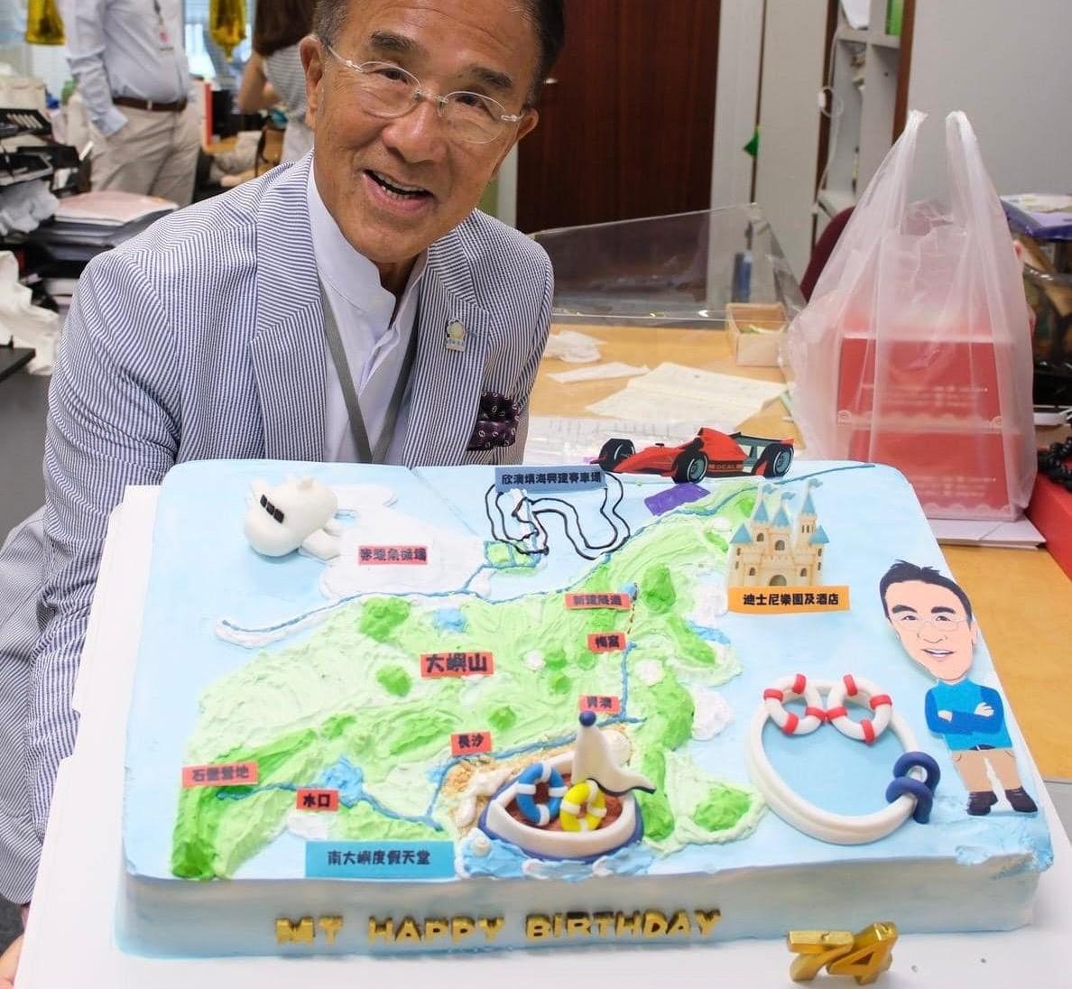 至於田北辰今年嘅生日願望係乜?佢話講出嚟就好難實現,不過大家睇吓議辦同事為佢悉心準備嘅蛋糕就估到。佢希望10年之後,可以同孫仔孫女去大嶼山度假,喺南大嶼玩滑翔傘、去欣澳鬥賽車,再搭第5條跨海鐵路去洪水橋巨型綜合娛樂城滑雪。佢話呢塊「蛋糕」可以令香港持續保持新鮮感,吸引國內外遊客,成為充滿驚喜嘅動感之都。田北辰希望政府同全香港市民一齊努力做好呢個「Cake」,香港將來唔會「撠」。