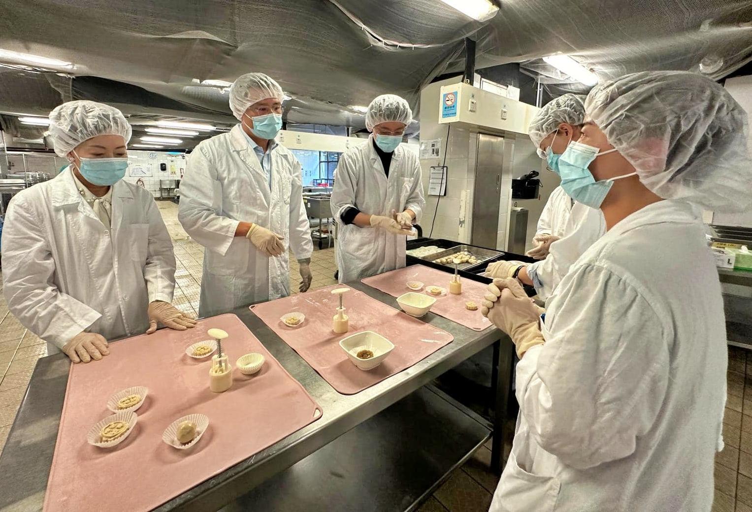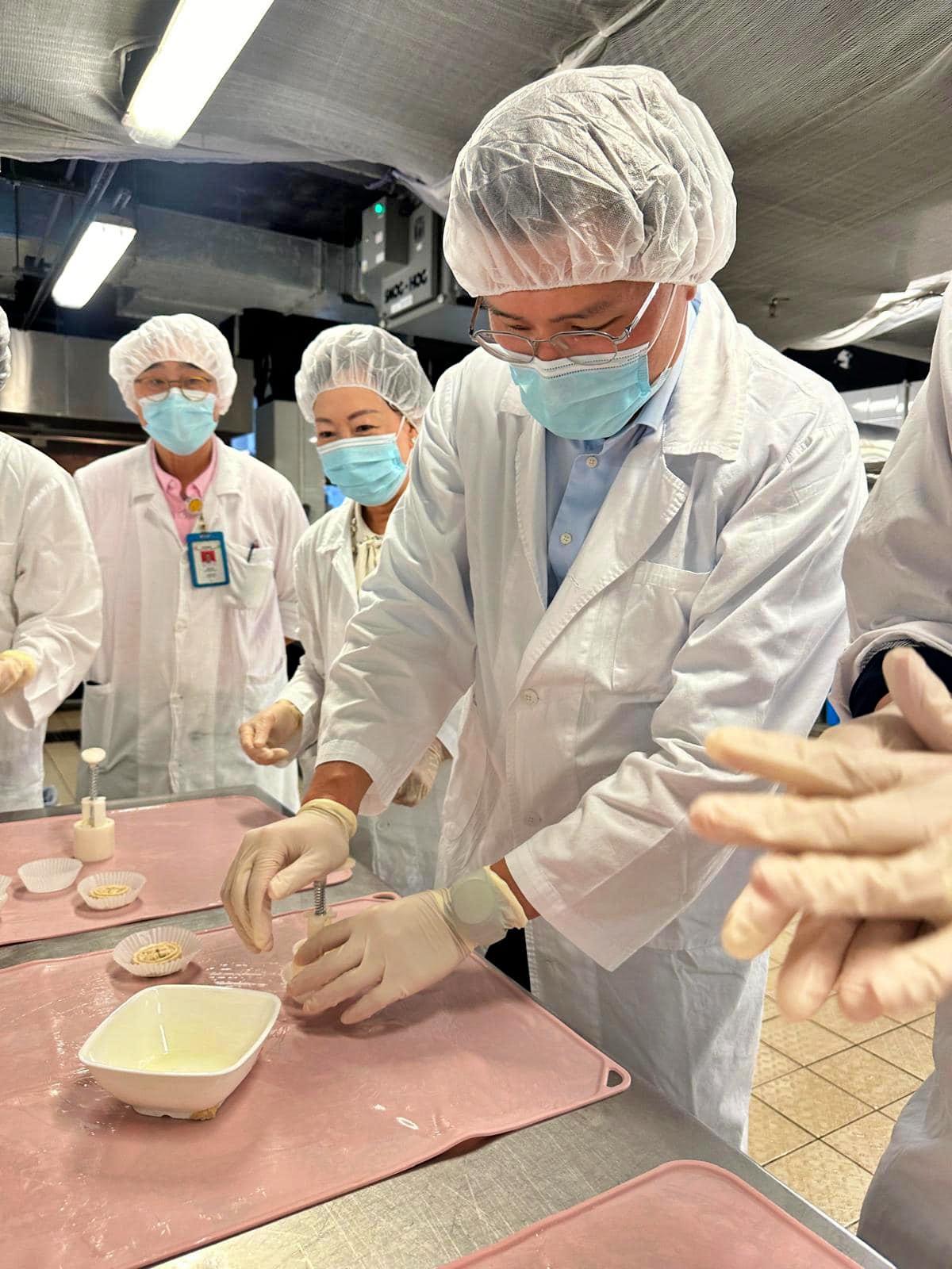 科技創新界立法會議員邱達根(中)到訪葵涌醫院幫手製作月餅軟餐(邱達根Facebook圖片)