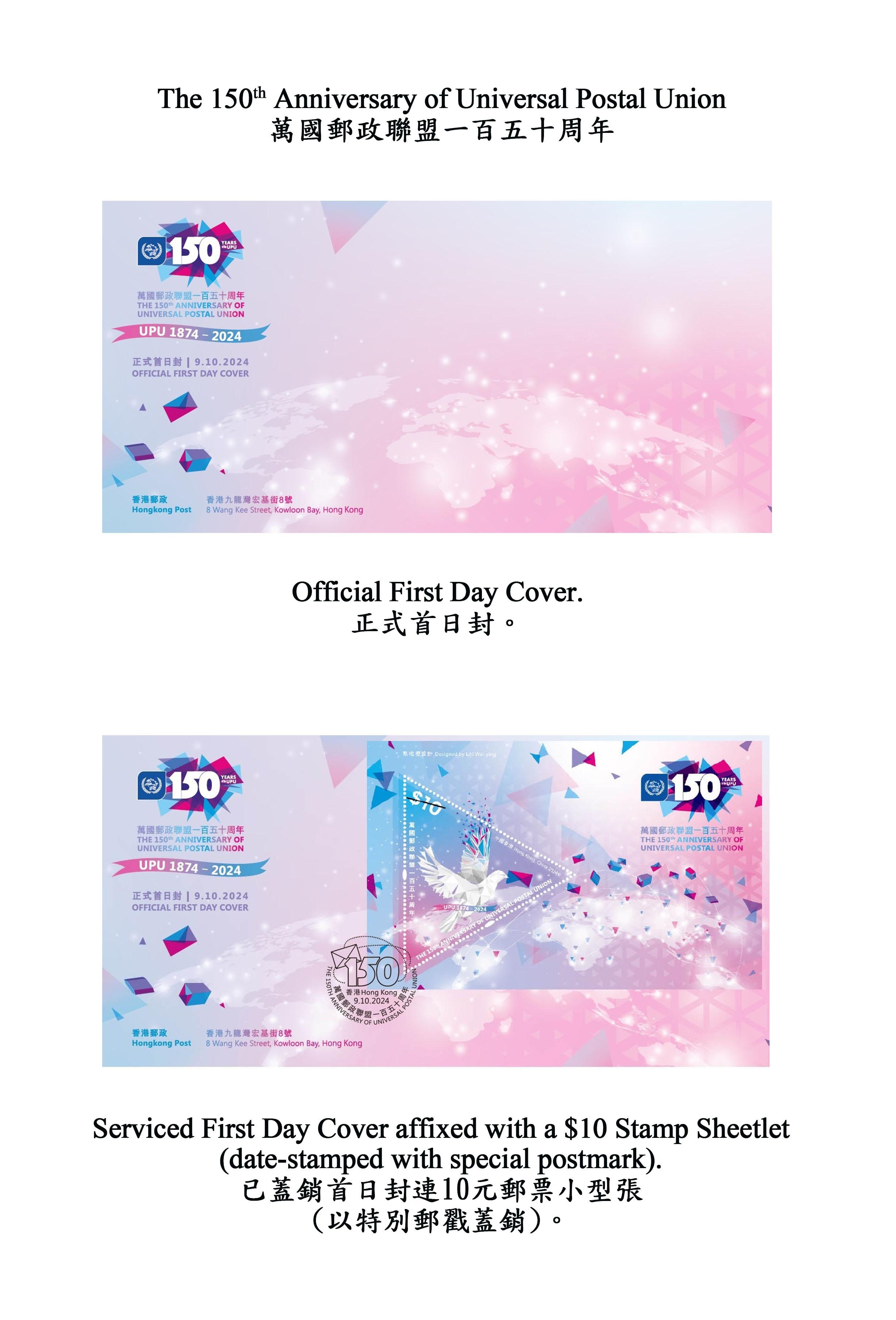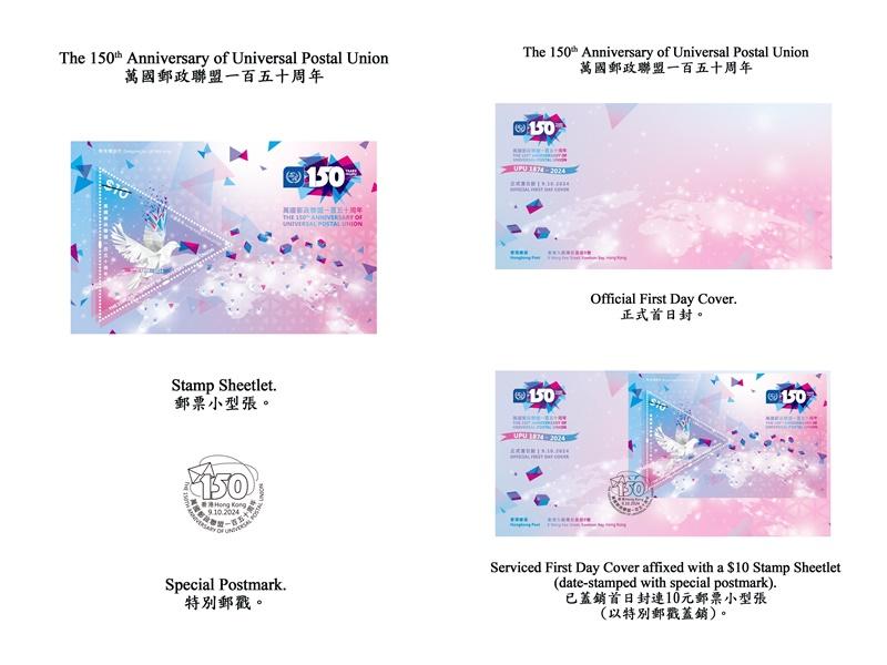 全線郵政局和網上購物坊「郵購網」由明日起發售「萬國郵政聯盟一百五十周年」正式首日封。郵票小型張及相關郵品則於10月9日起發售,貼有郵票小型張的已蓋銷首日封只限在集郵局發售,而各郵政局將於當日為所有正式首日封/紀念封/註明首日字樣和本地地址的自製封,提供即時人手蓋印服務。