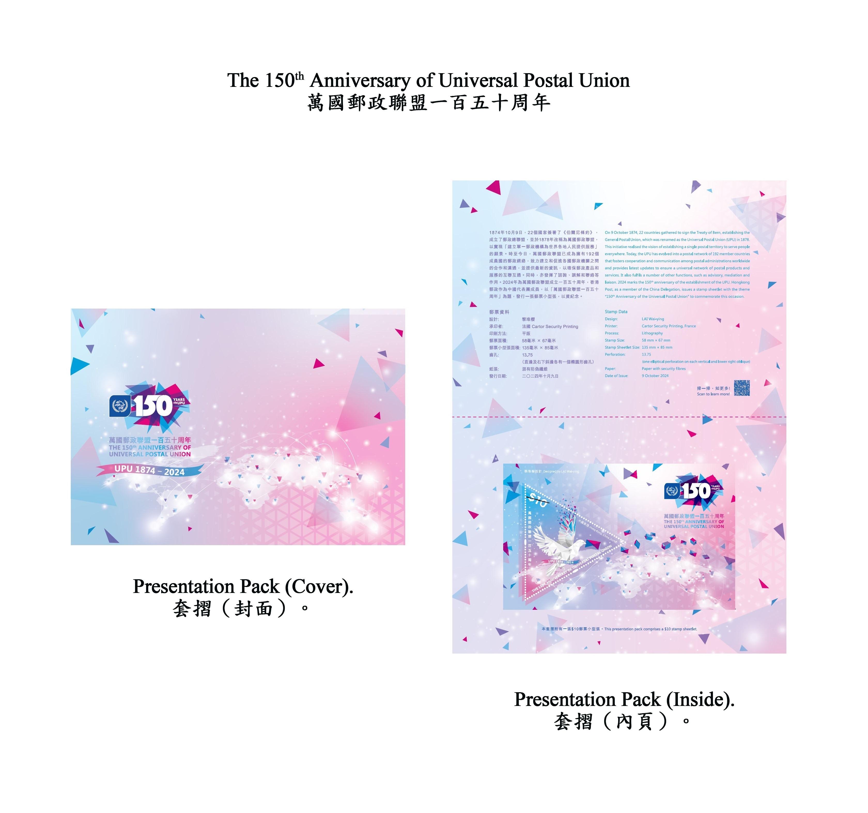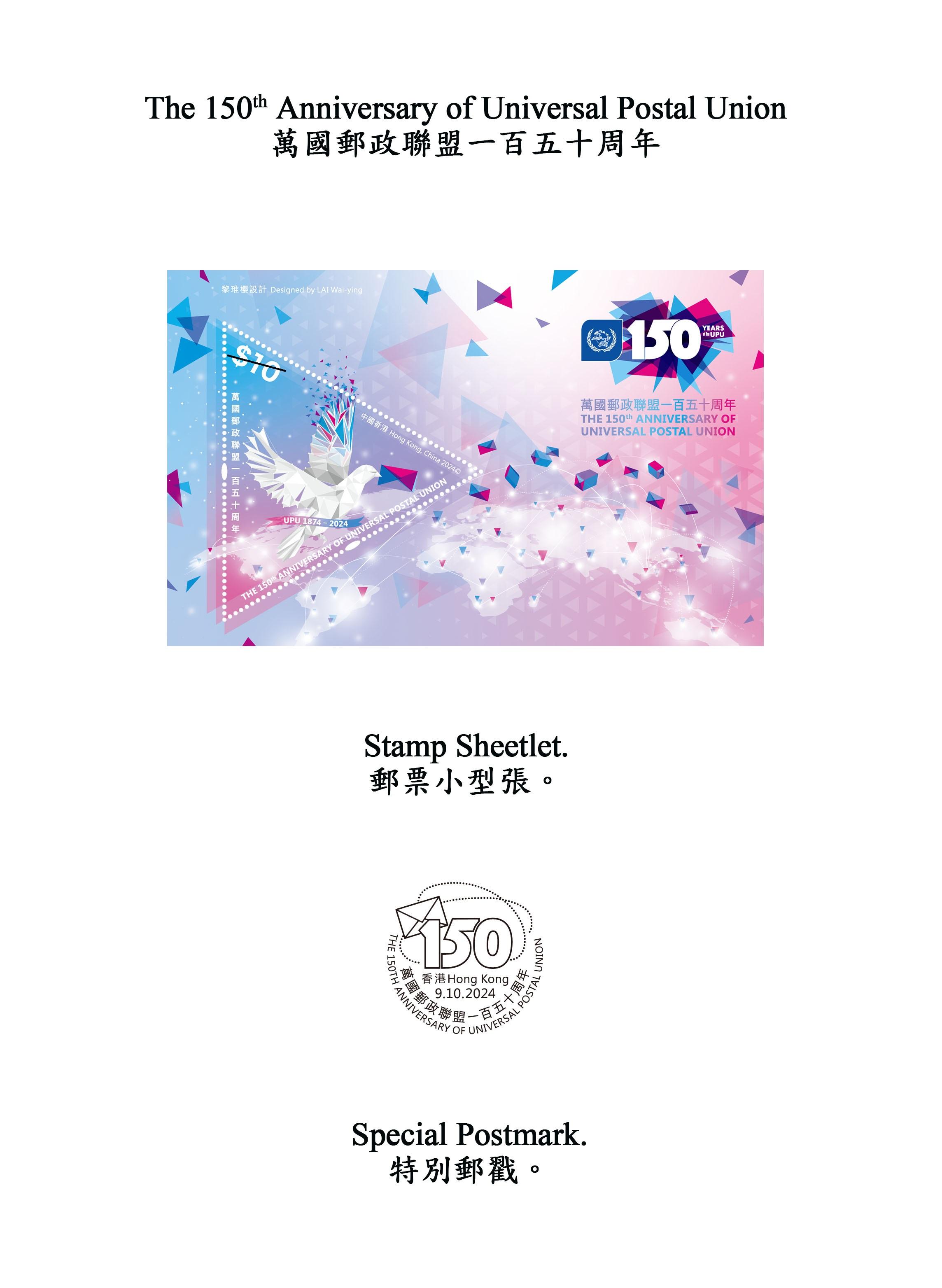 香港郵政今日(23日)宣布,以「萬國郵政聯盟一百五十周年」為題的郵票小型張及相關郵品將於10月9日推出發售。