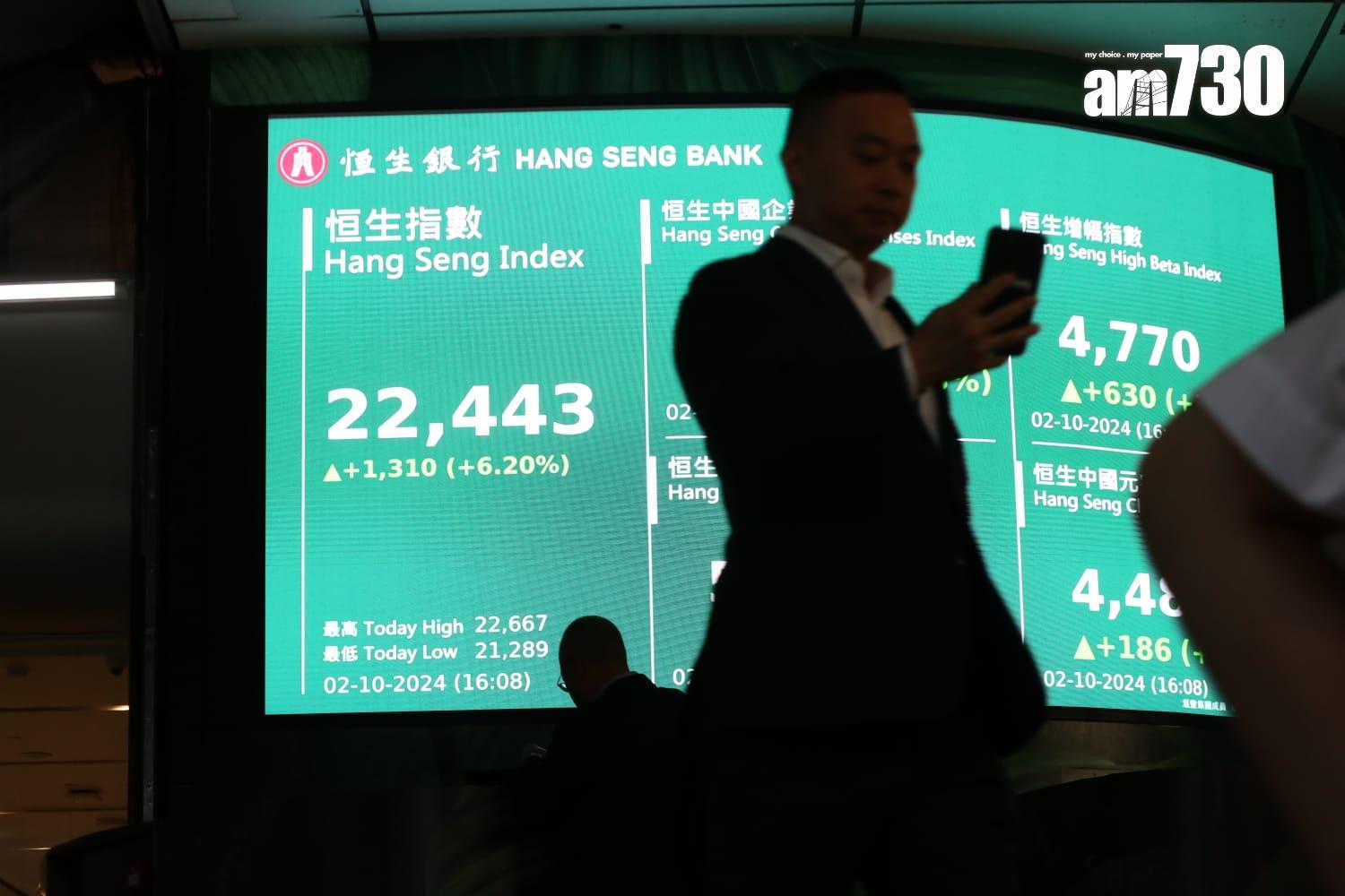 港股收市|大時代重臨?全日升1310點破兩萬二(鍾式明攝)