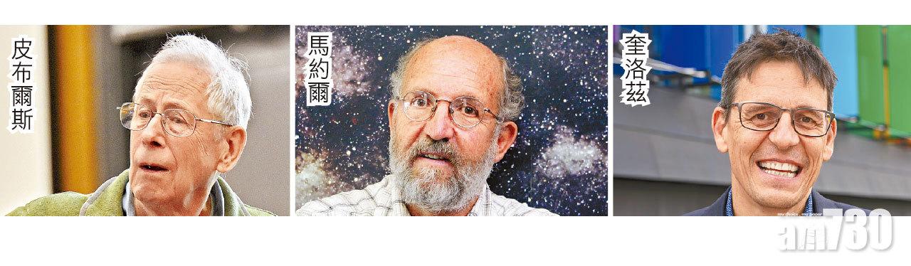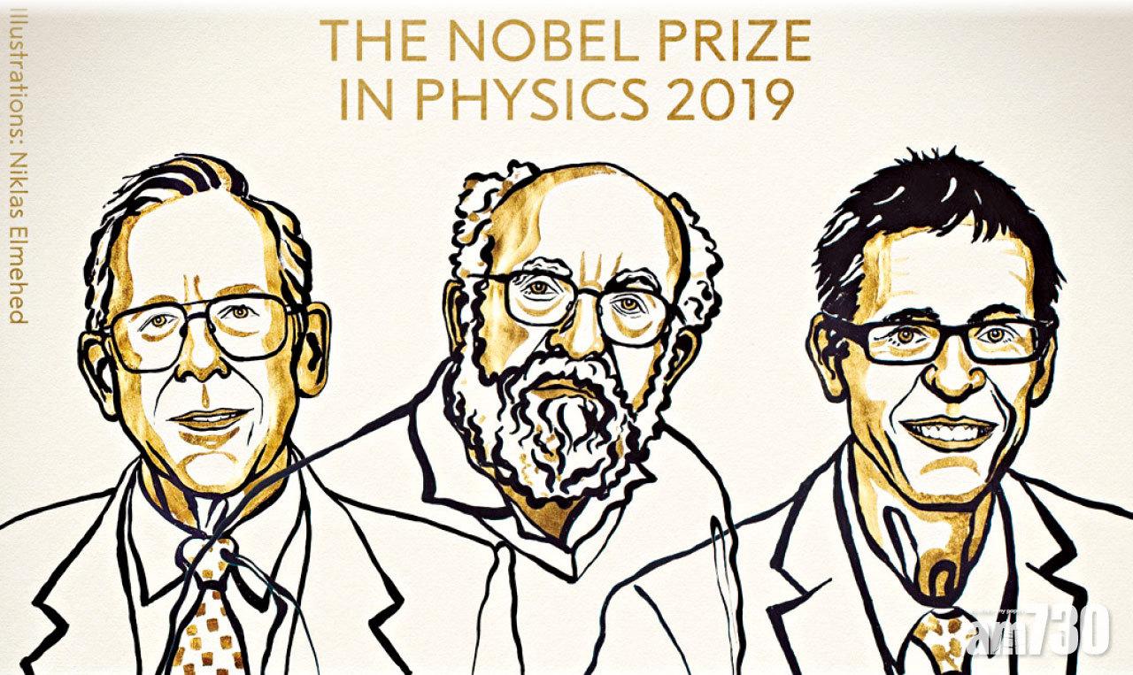 本年度諾貝爾物理學獎由生於加拿大、在美國從事研究工作的物理學及理論宇宙學家皮布爾斯(James Peebles)獲得一半殊榮,其餘由兩位瑞士天文學家馬約爾(Michel Mayor)及奎洛茲(Didier Queloz)平分,分別表揚前者在物理宇宙學的貢獻,以及後兩者發現太陽系外行星,改變了人類對世界的認知。