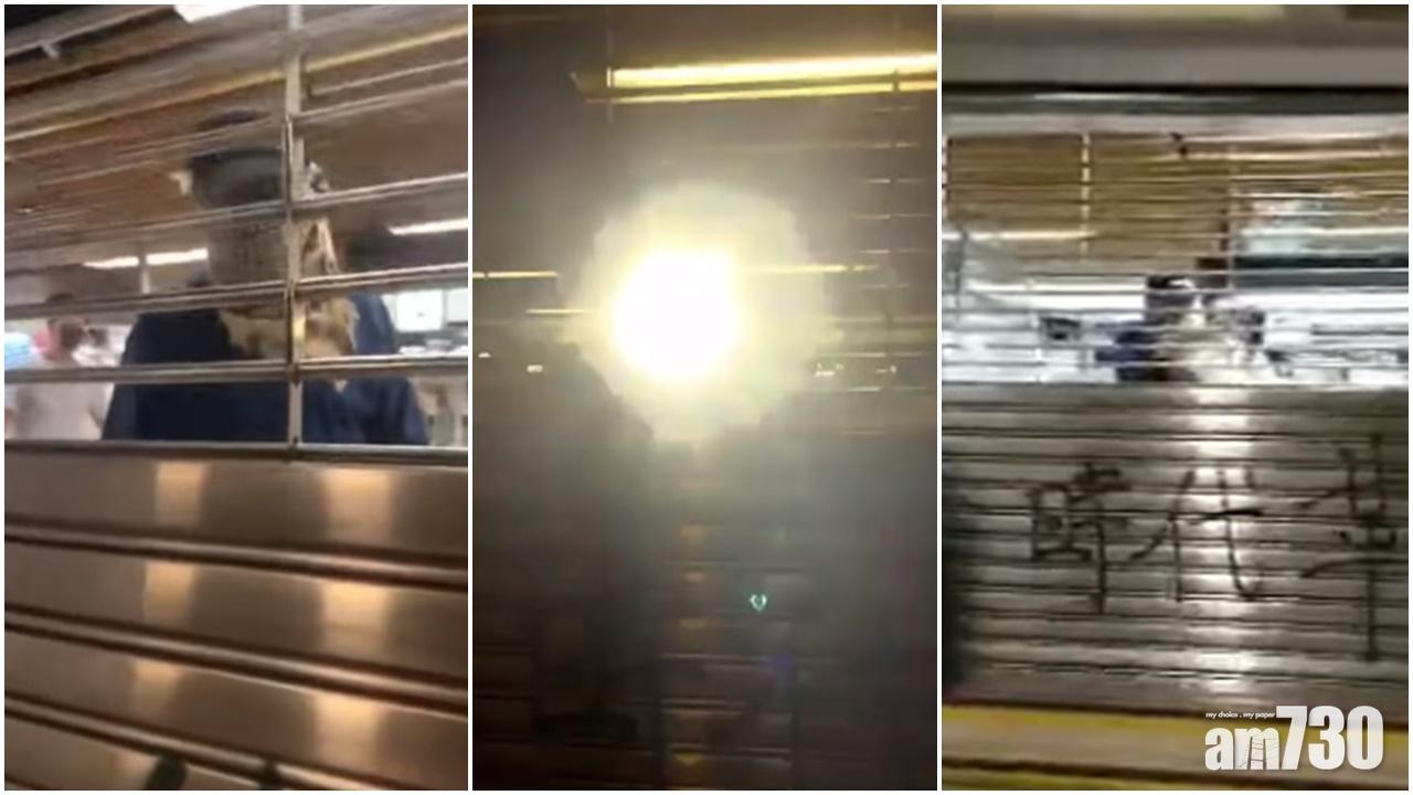 拍攝者指,昨晚約11時於上水火車站拍到已拉閘的站內,有多名蒙面人。從兩條片段所見,其中一名蒙面人在閘內喝令拍攝者離開,拍攝者詢問蒙面人身分,蒙面人未有回答,卻以疑似警方使用的強力電筒照射拍攝者,更一度持胡椒噴劑指向閘外,又與閘外途人對罵,期間又見一名蒙面人手持長棍物體在閘外經過。