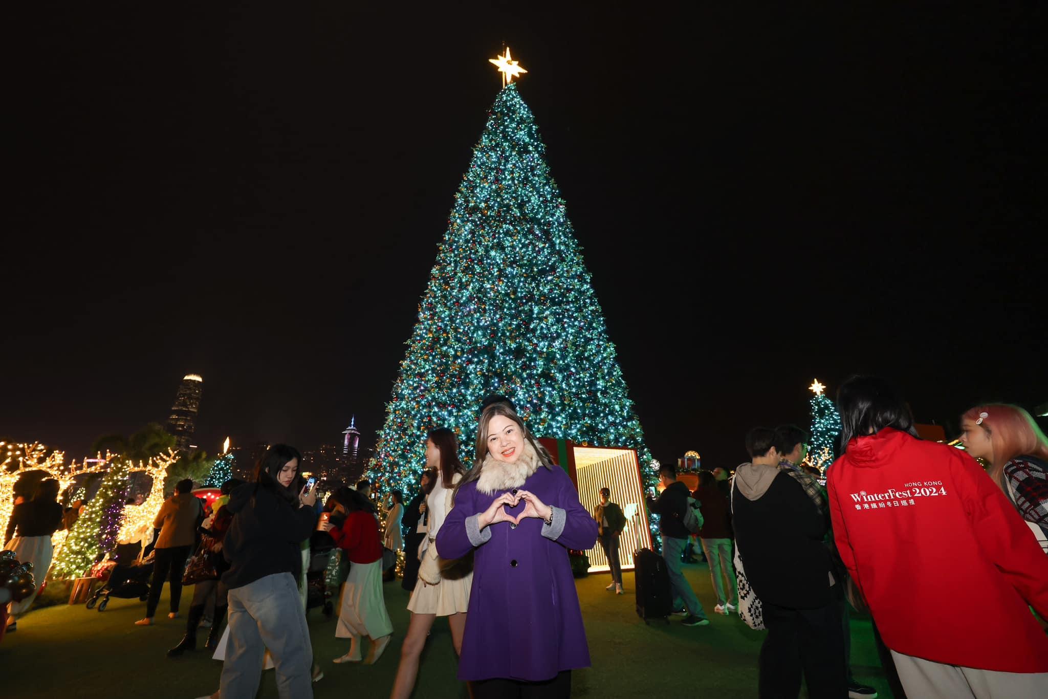 唔知羅淑佩係咪悉心打扮呢,著上紫色外套,同粉紫色嘅聖誕樹襯到絕。佢忍唔住打卡,仲對住鏡頭整心心。除咗打卡,佢仲幫襯聖誕市集,大嘆小食同啤酒,仲買咗手工飾物。佢留意到聖誕市集同旅發局繽紛冬日節嘅巨型聖誕樹,都吸引咗好多市民同旅客。佢話真心推介大家喺聖誕同農曆新年假期行吓,過個普天同慶嘅聖誕節!