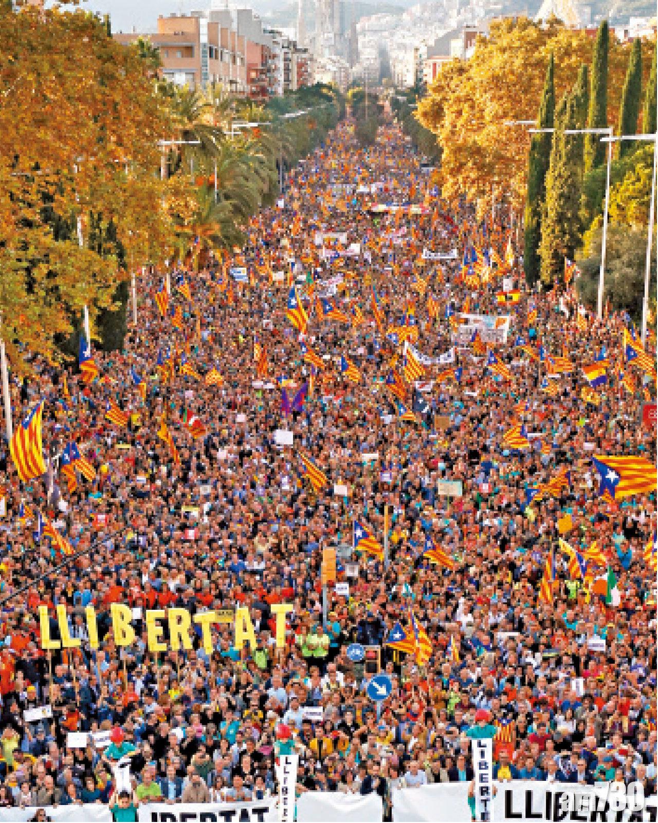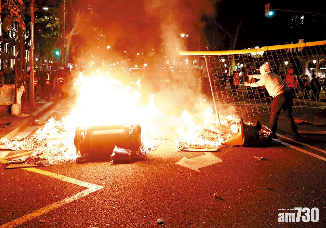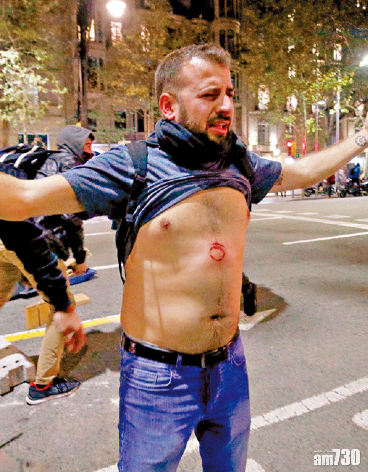 西班牙自治區加泰羅尼亞抗議獨立派領袖被判監的示威持續,前日有35萬人於首府巴塞隆拿上街支持加泰獨立運動,並要求與西班牙政府對話,但入夜後約有1萬名較激進的示威者在警察總部外聚集。示威者設置路障和焚燒雜物,又向警員投擲玻璃樽、膠波及磚頭,警員發射橡膠子彈和海綿彈驅散,最少44人受傷,包括一名腹部中橡膠子彈的路透社攝影記者。有年長示威者譴責暴力,但理解年輕人因無民主而憤怒。加泰統派昨也在巴塞隆拿舉行示威,呼籲團結並結束分離主義。