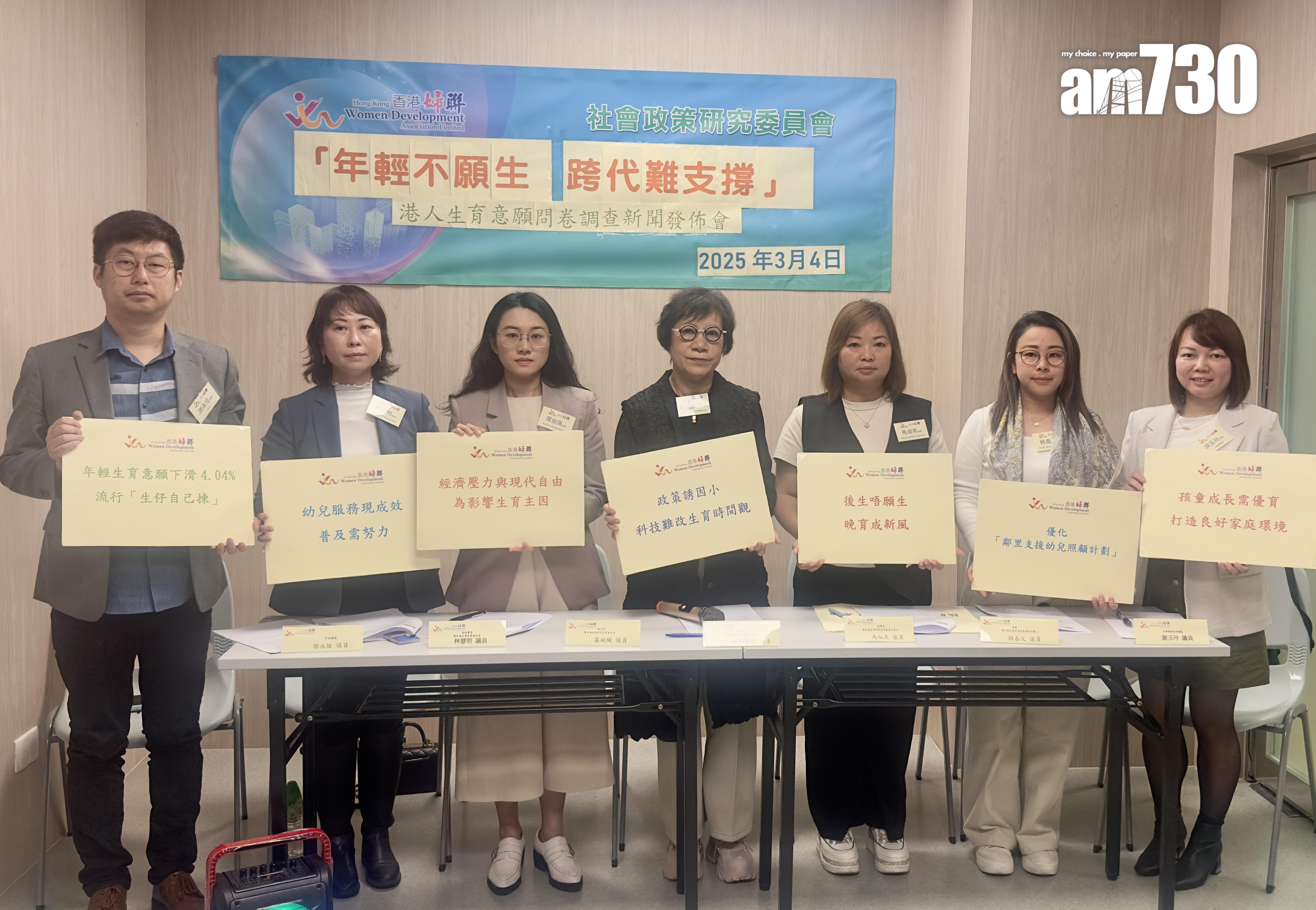 香港生育率持續在低水平,近10年更是呈現下跌趨勢,終在去年止跌。香港婦聯今日(4日)公布「港人生育意願2025」問卷調查結果,發現仍有七成受訪者表示不願意生育小朋友。分析指,育兒經濟壓力及年輕世代價值觀轉變為影響生育意願主因。婦聯建議政府落實家庭友善政策,在社會各方面提升嬰兒友善的環境、完善幼兒照顧服務以及立法增設三天育兒假等,以增加港人生育誘因。