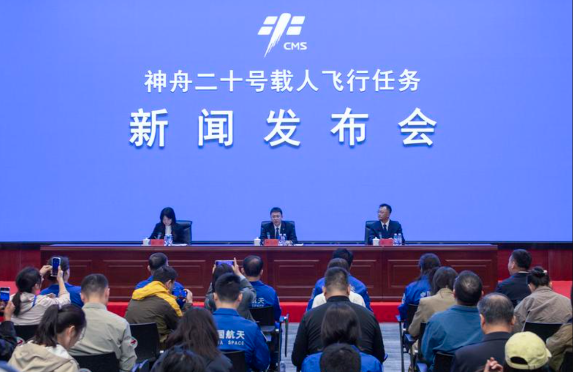 神舟二十號載人飛行任務新聞發佈會在酒泉衞星發射中心舉行。 (新華社)