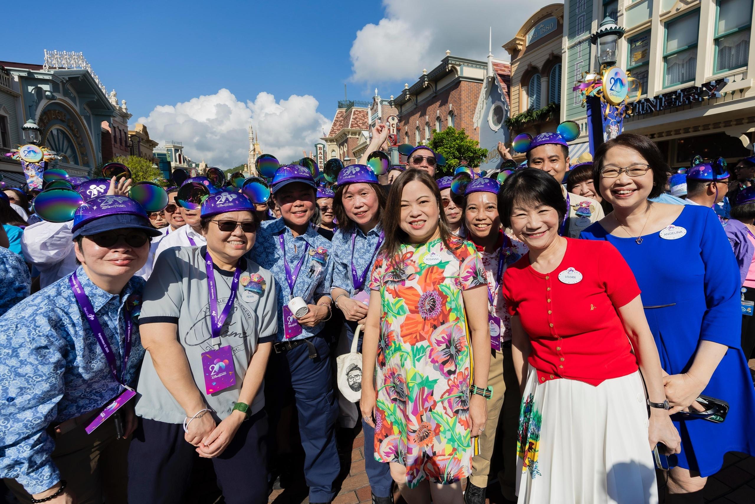 羅淑佩與迪士尼員工合照(香港迪士尼提供) 香港迪士尼樂園開幕20周年,園方舉行慶祝儀式(香港迪士尼提供) 香港迪士尼樂園開幕20周年,園方舉行慶祝儀式(香港迪士尼提供)