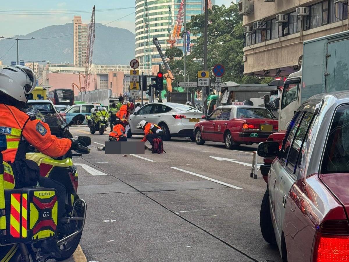 旺角老婦捱旅遊巴撞當場死亡,現場遺大堆紙皮。(馬路的事討論區)