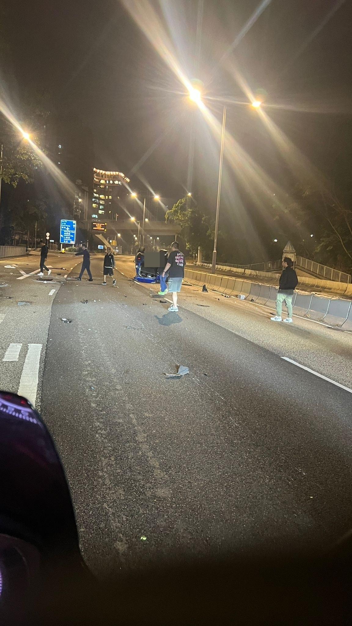 返回 本地 出版:2025-Dec-04 22:32 更新:2025-Dec-04 22:32 龍翔道私家車翻車四輪朝天 司機頭部受傷送院 分享: @fb車cam L(香港群組)圖片 警方今日(4日)晚上8時15分接報指,黃大仙發生車禍,一輛沿龍翔道,往荃灣方向行駛的藍色私家車,途至近天馬苑對開時,懷疑失控自炒翻轉,驚動多人報案。涉事藍色私家車在馬路上「反肚」,零件碎片散落一地,路邊的欄杆亦被撞至扭曲變形。 消防接報到場救援,意外中,私家車司機頭部流血,清醒由救護車送院治理。 ADVERTISEMENT