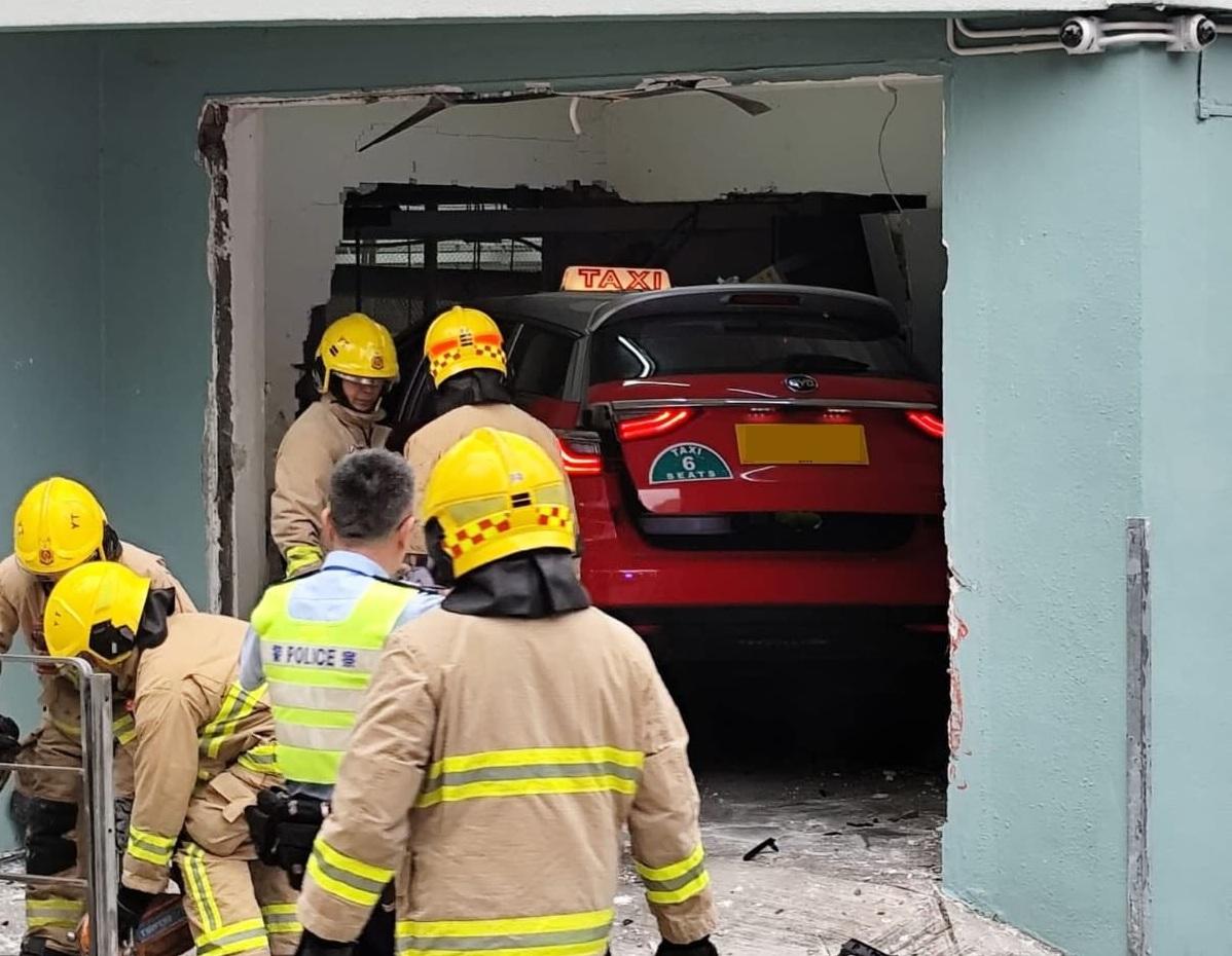 觀塘秀茂坪今早(25日)發生罕見交通意外,一架的士撞穿一間學校的外牆。61歲的女司機被困,其後清醒送院。