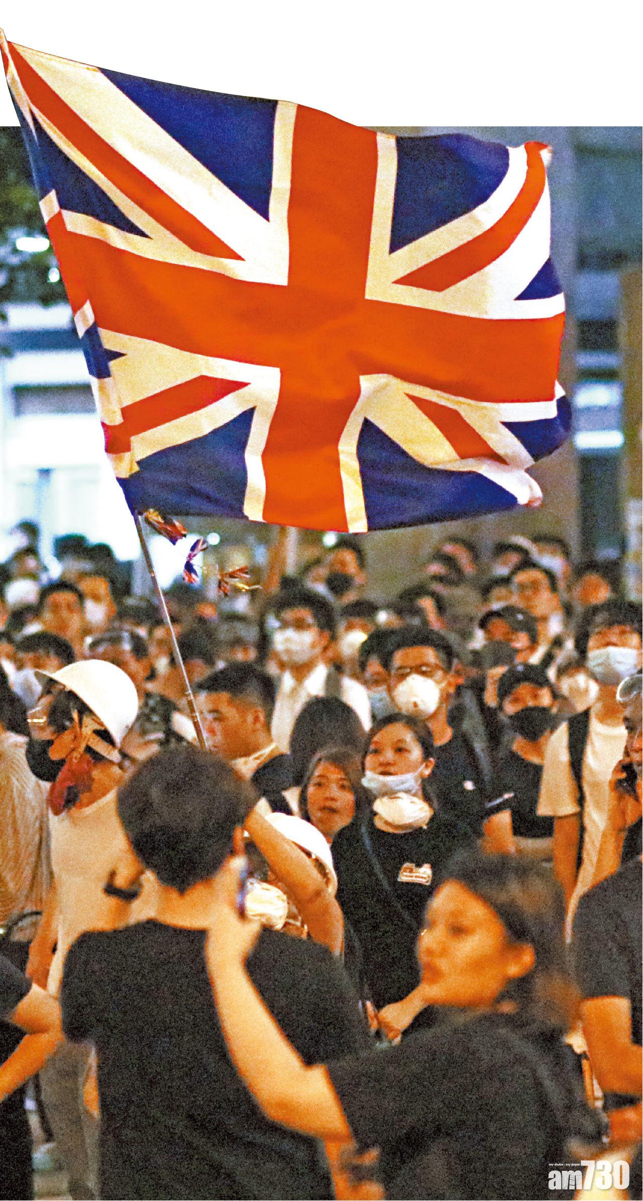 有示威者昨晚仍在金鐘聚集,期間有人揮舞英國國旗。(黃文山攝)