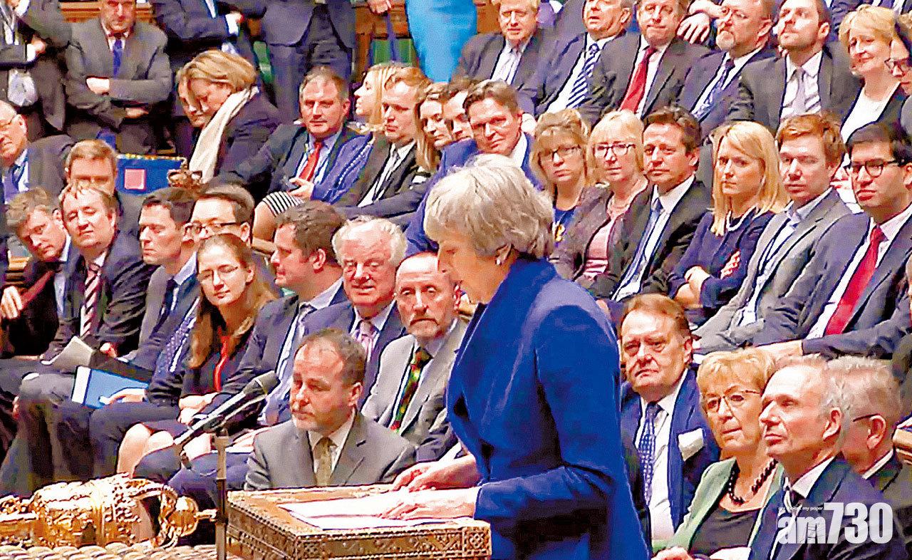 英國國會大比數否決首相文翠珊的脫歐方案。