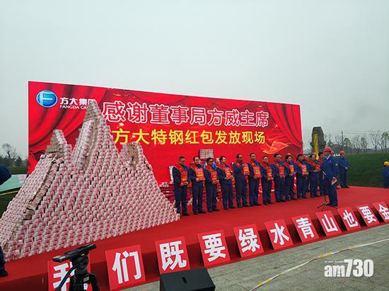 江西南昌一家上市鋼鐵企業「方大特鋼」,上周六向員工派發總值3.12億元(人民幣,下同)現金花紅,從網絡流傳的現場照片可見,「現金山」疊起來比人還要高,相當壯觀,而五千多名員工各分得6萬元,60歲以上符合條件的退休員工亦每人有5,000元。有員工表示,「和去年比較翻了番(多了一倍),太驚喜了」,還有員工稱,「這麼多獎金,不知道怎麼花」。