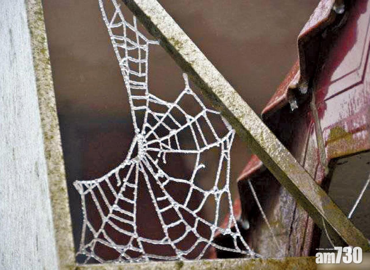 韶關有蜘蛛網結冰。(互聯網)
