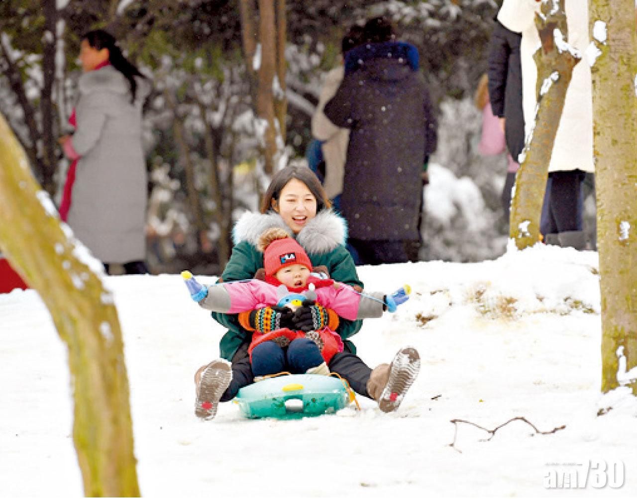 湖南市民在公園玩雪。(新華社)