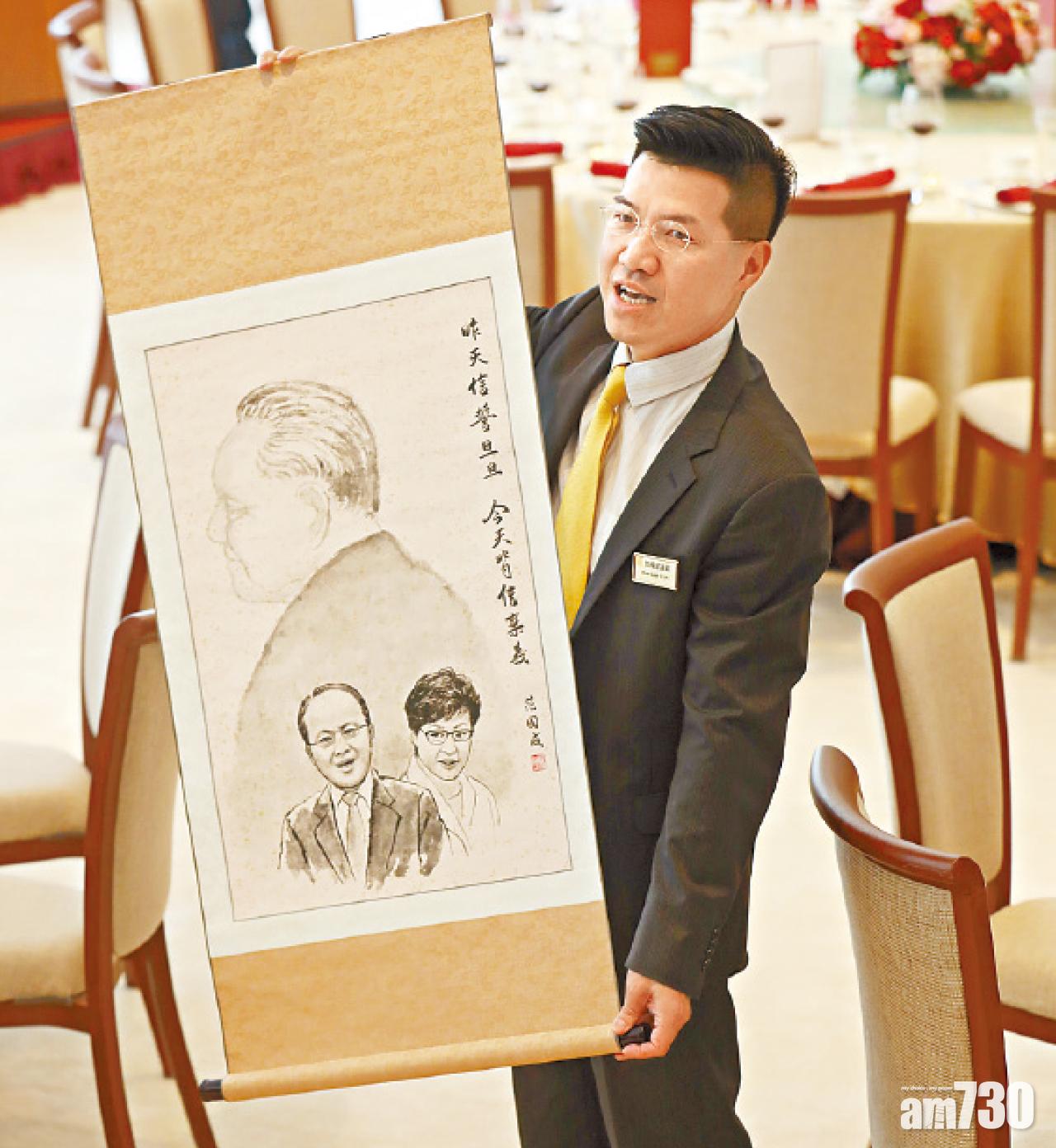 至於范國威事先張揚「贈慶」的禮物則未能送出,該幅由他親自繪畫的水墨畫,除了以鄧小平為主角外,還畫上王志民及特首林鄭月娥的肖像,並題字「昨天信誓旦旦,今天背信棄義」,以示不滿中聯辦近年多次介入香港內部事務,違背鄧小平「一國兩制」及「高度自治」等承諾。范國威在午宴企圖走近王志民時,即被攔阻,立法會主席梁君彥與多名保安亦步亦趨,范國威最終被保安帶離宴會廳。