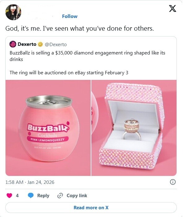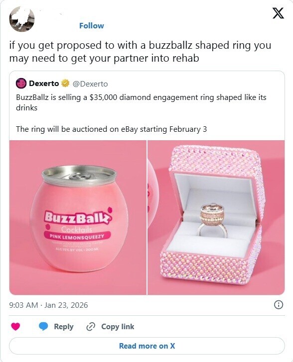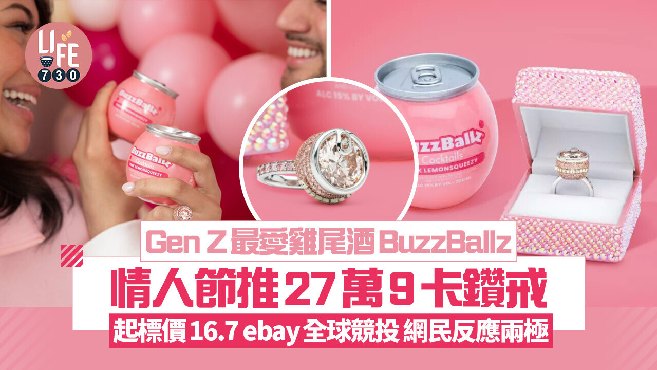 Gen Z最愛雞尾酒BuzzBallz 情人節推27萬9卡鑽戒 起標價16.7 ebay全球競投 網民反應兩極