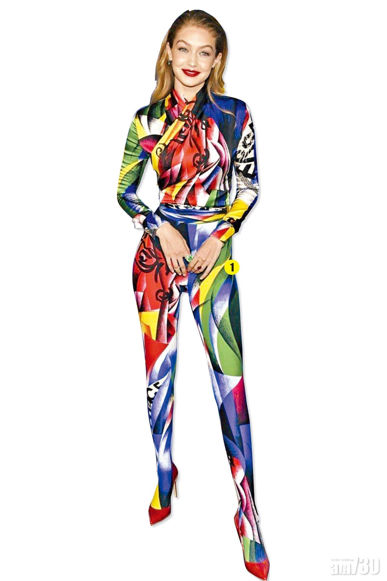 美國索模Gigi Hadid(圖1)身穿色彩超鮮豔的Versace連身裙亮相,貼身設計將她的美好身段表露無遺,配搭狂野的紅唇和紅色尖頭高踭鞋,青春無敵。