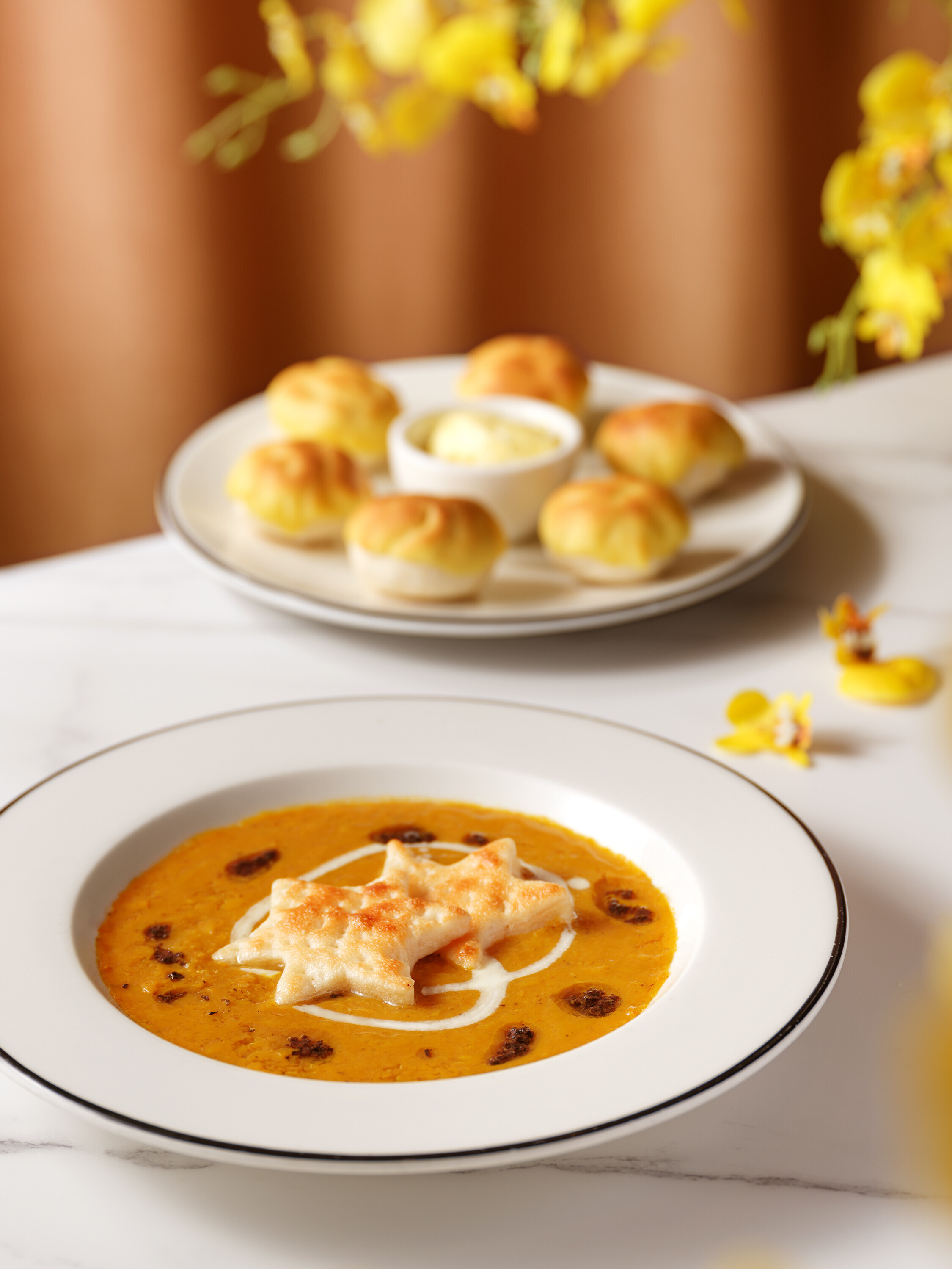 今年PizzaExpress於新春菜譜送上一道道真摯祝福。新春單點美食由栗子南瓜湯暖心揭幕,絲滑南瓜與香甜栗子以松露油點綴,寓意來年豐盛圓滿;玩味十足的黃金菠蘿包則是驚喜之作,將港式酥脆外皮與招牌麵包球巧妙結合,佐以金黃牛油芝士醬,象徵財運亨通。